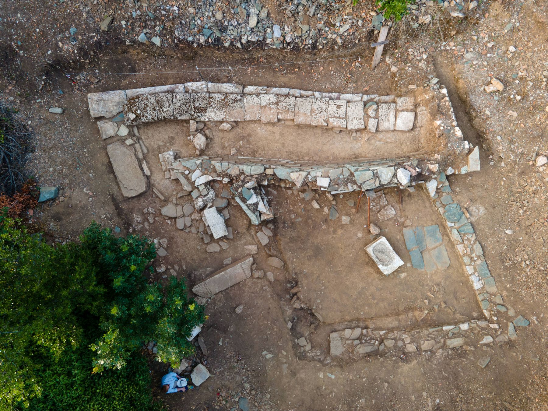 Αρχιτεκτονικά κατάλοιπα μνημειακού κτηρίου έφερε στο φως ανασκαφική έρευνα της Εφορείας Αρχαιοτήτων Λάρισας στη θέση «Σκιαθάς», σε χώρο όπου διακρινόταν μαρμάρινο κατώφλι και τμήματα τοίχων. Από τα μέχρι τώρα ανασκαφικά δεδομένα προκύπτει ότι πρόκειται για ιερό των ελληνιστικών χρόνων (3-2ος αι. π.Χ.), κατασκευασμένο από πωρόλιθο και ντόπιο λίθο. Εντοπίσθηκαν αρχιτεκτονικά μέλη, όπως τμήμα από το επιστύλιο και πέντε κιονόκρανα δωρικού ρυθμού. Επίσης στο εσωτερικό του βρέθηκαν βάθρο αγάλματος, τμήμα στήλης, μαρμάρινο πόδι τράπεζας, καθώς και δύο μαρμάρινες κεφαλές παιδιών, ενός κοριτσιού και ενός αγοριού.