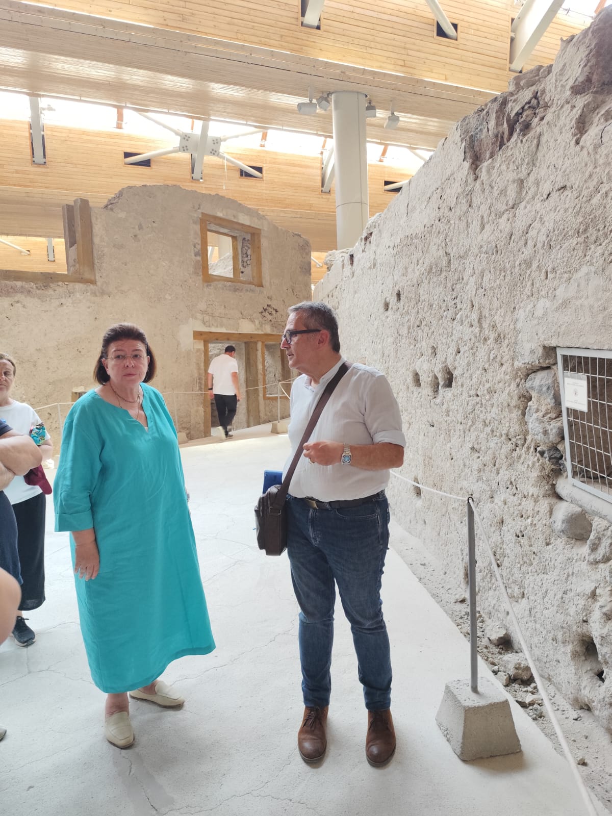 Η Υπουργός Πολιτισμού Λίνα Μενδώνη πραγματοποίησε αυτοψία, στους δύο εμβληματικούς αρχαιολογικούς χώρους της Σαντορίνης -την Αρχαία Θήρα και τον προϊστορικό οικισμό του Ακρωτηρίου- στο πλαίσιο της παρουσίας της στο νησί για τα εγκαίνια του νέου Αρχαιολογικού Μουσείου Θήρας.