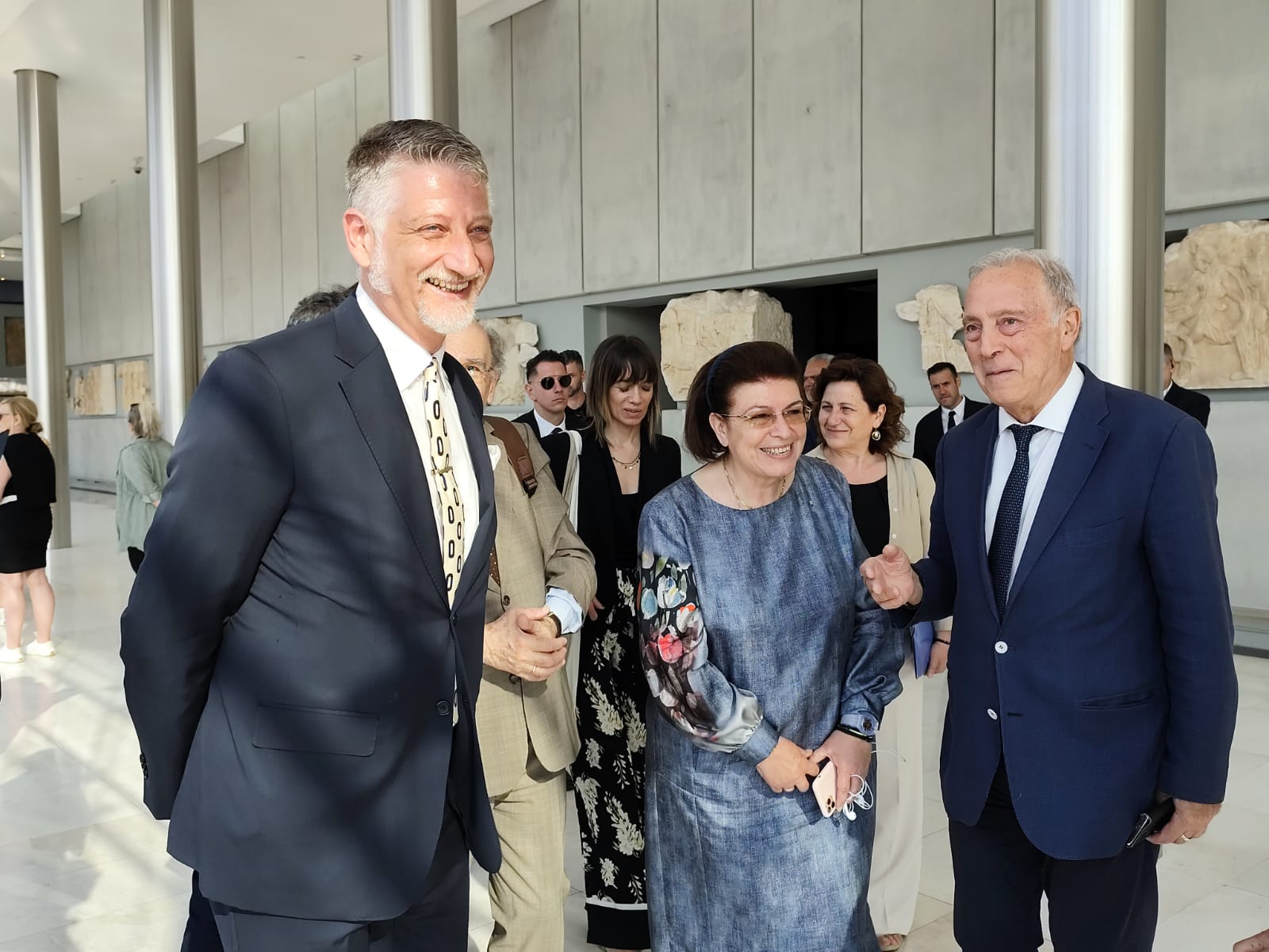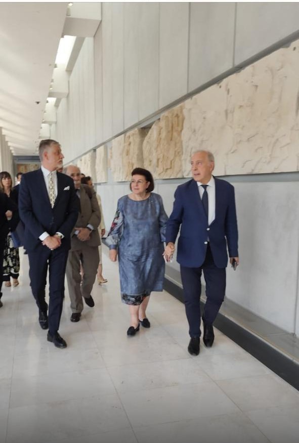 Ακολούθως, η Λίνα Μενδώνη ξενάγησε τον Ιταλό ομόλογό της στο Μουσείο της Ακρόπολης, παρουσία του Γενικού Διευθυντή Νίκου Σταμπολίδη. Οι δύο Υπουργοί είχαν την ευκαιρία να συζητήσουν εκτενώς το ελληνικό αίτημα της επανένωσης των Γλυπτών του Παρθενώνα στην Αθήνα. Ο Alessandro Giuli πρότεινε να εργαστούν από κοινού, ώστε το Βρετανικό Μουσείο να κάνει αυτό που επιβάλλει η ηθική των Μουσείων, σήμερα, δηλαδή να επιστρέψει τα Γλυπτά, εκεί όπου ανήκουν.