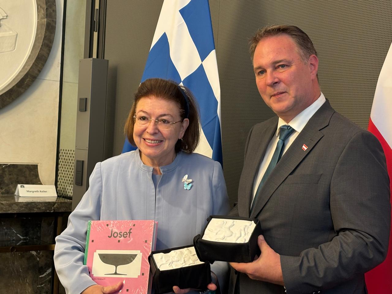 Συνάντηση εργασίας πραγματοποίησε, στη Βιέννη, η Υπουργός Πολιτισμού Λίνα Μενδώνη με τον Αντικαγκελάριο και Υπουργό Κατοικίας, Τεχνών, Πολιτισμού, Μέσων Ενημέρωσης και Αθλητισμού της Αυστρίας, Andreas Babler.