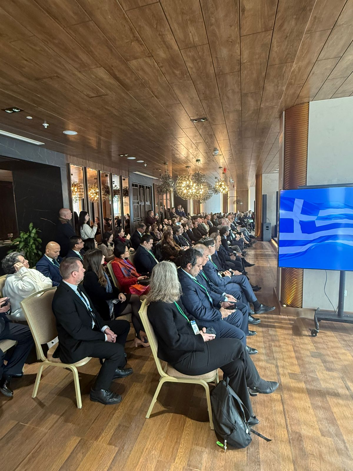 Στη συνέχεια η Λίνα Μενδώνη για να δώσει ένα απτό παράδειγμα του πλούτου και της δυναμικής της ελληνικής γλώσσας, την αδιαμφισβήτητη συμβολή της στην παγκόσμια επιστημονική ορολογία και πώς διαπερνά βασικές έννοιες της επιστήμης και της τεχνολογίας έκλεισε το λόγο της ακολουθώντας το παράδειγμα του Ξενοφώντα Ζολώτα, το 1959. Μιλώντας αγγλικά και χρησιμοποιώντας μόνον ελληνικές λέξεις, απέδειξε την παγκόσμια επιρροή της ελληνικής γλώσσας, η οποία συνεχίζει να εμπλουτίζει τον επιστημονικό λόγο στις σύγχρονες γλώσσες του δυτικού κόσμου, ενθουσιάζοντας το πολυπληθές ακροατήριο. Κλείνοντας, στα ελληνικά την ομιλία της, κατέληξε: