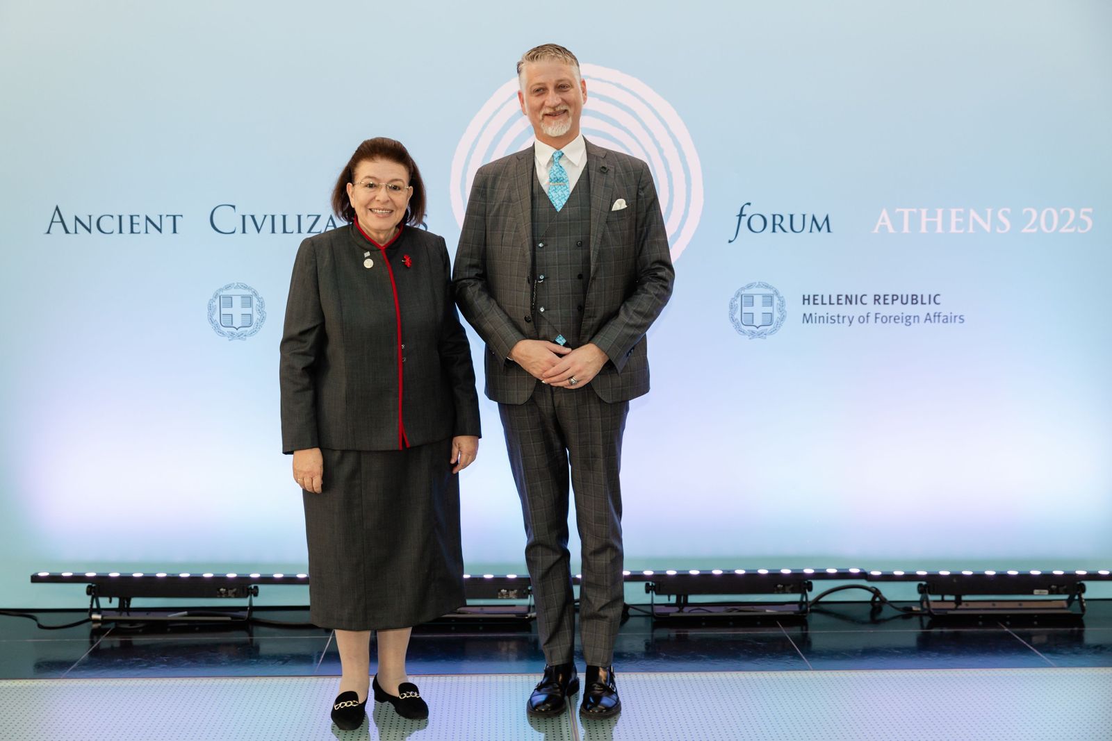 O Υπουργός Εξωτερικών Γιώργος Γεραπετρίτης στην ομιλία του προς τους Υπουργούς και τις αντιπροσωπείες των κρατών-μελών του Φόρουμ Αρχαίων Πολιτισμών, σημείωσε: «Επαναβεβαιώνουμε την κοινή δέσμευση των εθνών μας να προστατεύουν και να προάγουν την πολιτιστική μας κληρονομιά, με τρόπους που ενισχύουν τη συνεργασία και την αμοιβαία κατανόηση, σε μια εποχή πρωτοφανών παγκόσμιων προκλήσεων. Αποτελεί απτή απόδειξη της αταλάντευτης προσήλωσής μας στη διαφύλαξη της πολιτιστικής κληρονομιάς, όπου και αν αυτή απειλείται, καθώς και στην ανάδειξη της σημασίας της για τη διαμόρφωση ειρηνικών και συμπεριληπτικών κοινωνιών […] Σε έναν κόσμο που χαρακτηρίζεται, ολοένα και περισσότερο από γεωπολιτικό κατακερματισμό, η αποστολή του Φόρουμ δεν υπήρξε ποτέ πιο κρίσιμη. Η Διακήρυξη του Ερεβάν, της 8ης Υπουργικής Συνόδου, ορθώς επεσήμανε ότι η καταστροφή της πολιτιστικής περιουσίας που ανήκει σε οποιονδήποτε λαό, συνιστά ζημία για την πολιτιστική κληρονομιά ολόκληρης της ανθρωπότητας […] Η ιστορία μας, αγαπητοί φίλοι, μας δείχνει ότι η ανθρωπότητα έχει υπερβεί και στο παρελθόν μεγάλες μεταβάσεις. Μας υπενθυμίζει ότι η αντοχή μας δεν εδράζεται μόνο στην οικονομική ή τη στρατιωτική μας ισχύ, αλλά πρωτίστως στην ανθεκτικότητα των θεμελιωδών μας αξιών. Ας αφήσουμε τα επιτεύγματα των πολιτισμών μας, αγαπητοί φίλοι, να μας εμπνεύσουν ώστε να σταθούμε αντάξιοι των προκλήσεων της εποχής μας».