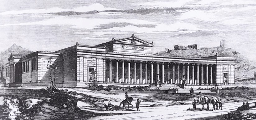 1871–1889: Κατασκευή πτερύγων (Κάλκος, Βλάχος, Ziller). Το 1889 ολοκληρώνεται η δυτική όψη και η κεντρική αίθουσα, με νεοελληνιστικό ύφος και αρχές της Αθηναϊκής Τριλογίας.