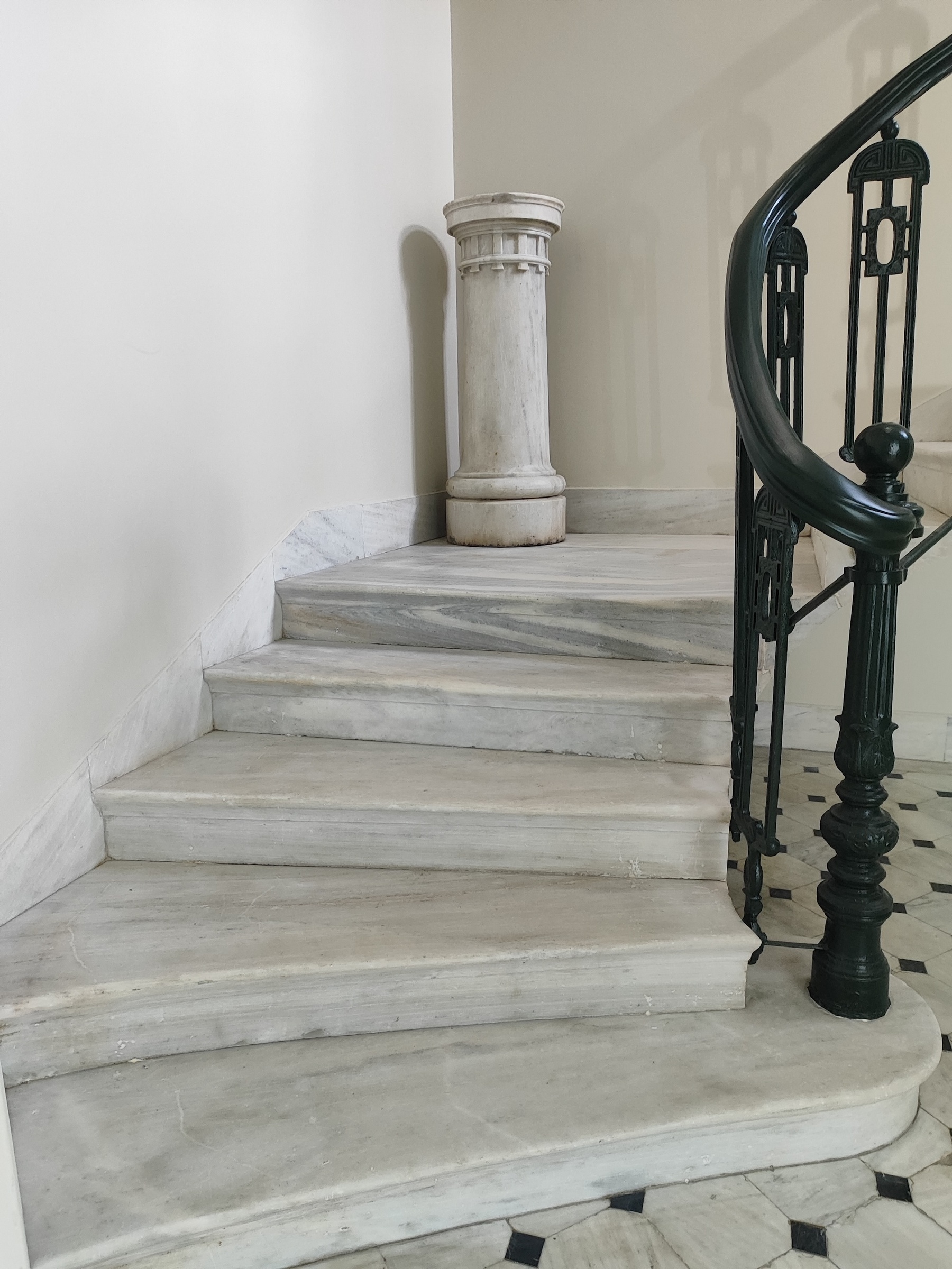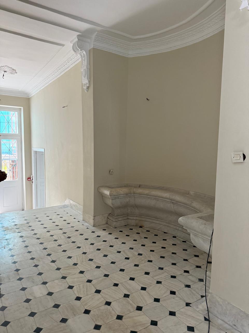 Το κτήριο αναπτύσσεται σε τέσσερεις στάθμες. Οι χώροι του ισογείου είναι ενιαίοι και λιτοί, χωρίς μορφοπλαστικό διάκοσμο. Ο Α΄ όροφος φιλοξενούσε την κυρίως κατοικία. Οι οροφές των κύριων, προβεβλημένων χώρων του, φέρουν γλυπτικό διάκοσμο, γεωμετρικά πιο απλοποιημένα στο χωλ της εισόδου και περίτεχνο με φυτικά στοιχεία στα, κυρίως, δωμάτια προς την οδό Ερμού. Ο Β΄ όροφος περιλαμβάνει μεγάλη βεράντα με κτιστό στηθαίο με θέα προς την Πλάκα και την Ακρόπολη. Το κτήριο, σε βάθος του χρόνου, έχει δεχτεί επεμβάσεις. Το 1994, εκτελέστηκαν εκτεταμένες εργασίες αποκατάστασης από το ΥΠΠΟ. Το 2024, το Υπουργείο Πολιτισμού -δια της Υπηρεσίας Νεωτέρων Μνημείων και Τεχνικών Έργων Αττικής- προχώρησε σε εργασίες άρσης επικινδυνότητας και συνολικής αποκατάστασης του κτηρίου, προϋπολογισμού περίπου 750.000 ευρώ, από το Εθνικό Πρόγραμμα Ανάπτυξης του ΥΠΠΟ. Στο πλαίσιο αυτό πραγματοποιήθηκε πέρα από την στερέωση και αποκατάσταση όλων των σωζόμενων στοιχείων του κτηρίου και η διερεύνηση των αρχικών χρωματισμών των όψεων και του εσωτερικού του. Από τα σωζόμενα στοιχεία τεκμηριώθηκε η αρχική εικόνα του κτηρίου, η οποία και αποκαταστάθηκε. Παράλληλα, υλοποιήθηκαν και εργασίες λειτουργικής αναβάθμισης και προσβασιμότητας σε εμποδιζόμενα άτομα και άτομα με αναπηρία.