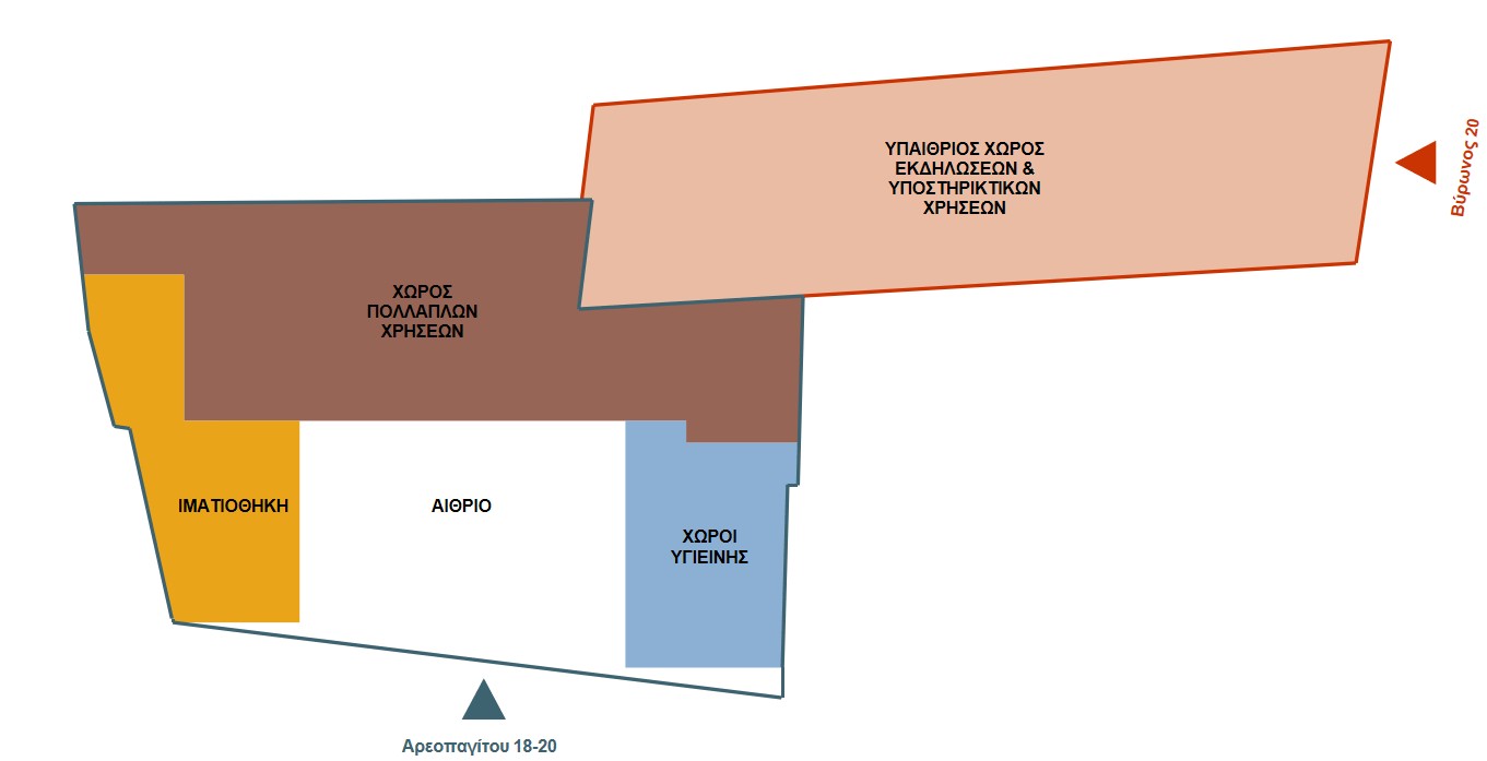 Στην επανάχρηση του κτηρίου, επί της οδού Αρεοπαγίτου 18-20, και στη διαμόρφωση του παράπλευρου οικοπέδου, επί της Βύρωνος 20 -με λειτουργική σύνδεση των δύο ακινήτων- προχωρά το Υπουργείο Πολιτισμού. Η υλοποίηση του έργου θα καταστήσει εφικτή την απόδοση των δύο ακινήτων στο κοινό, ενισχύοντας τις υπηρεσίες εξυπηρέτησης των επισκεπτών του αρχαιολογικού χώρου της Ακρόπολης, με σύγχρονες υποδομές, που συνδυάζουν λειτουργικότητα, εκπαιδευτικό και πολιτιστικό χαρακτήρα. Βασικές αρχές σχεδιασμού του έργου είναι η διατήρηση της μορφολογίας και του χαρακτήρα του κτηρίου, επί της Αρεοπαγίτου 18-20, αλλά και του υπαίθριου χαρακτήρα, στο οικόπεδο επί της Βύρωνος 20. Με την ολοκλήρωση του έργου, οι δύο χώροι αποδίδονται στο κοινό, καλύπτοντας λειτουργικές ανάγκες του αρχαιολογικού χώρου της Ακρόπολης, ενώ συγχρόνως αναβαθμίζουν την εμπειρία των επισκεπτών.