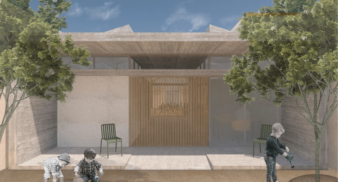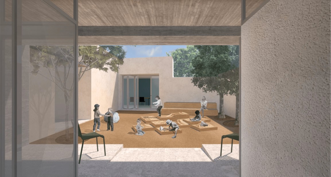Το κτήριο επί της Διονυσίου Αρεοπαγίτου 18-20 είναι ισόγειο, με χώρους που διαμορφώνονται σε σχήμα Π γύρω από ένα αίθριο. Το κτήριο περιβάλλει την αυλή με μια στοά-σκίαστρο. Η είσοδος όλων των στεγασμένων χώρων πραγματοποιείται μέσω αυτής. Εσωτερικά, το κτήριο περιλαμβάνει ένα ενιαίο χώρο, υποστηριζόμενο από βοηθητικούς χώρους (αποθήκη, γραφείο, ιατρείο), ενώ και υπάρχει πρόσβαση, από την αυλή, σε χώρο υγιεινής. Στο οικόπεδο επί της οδού Βύρωνος 20 υπήρχε παιδική χαρά, που είχε κατασκευάσει ο Δήμος Αθηναίων το 1983, με διαμορφώσεις καθιστικών, κρήνης, χαμηλών φυτεύσεων και μικρού οικίσκου χώρων υγιεινής. Στις αρχές της δεκαετίας του 2000, στο κεντρικό τμήμα του οικοπέδου χωροθετήθηκε βιομηχανικό κτήριο. Η είσοδος στο οικόπεδο γίνεται μέσω μεταλλικής αυλόθυρας πλαισιωμένης από κτιστή όψη, εκατέρωθεν της εισόδου, που παραπέμπει σε τυπικό μαντρότοιχο αθηναϊκής αυλής αρχών του περασμένου αιώνα.