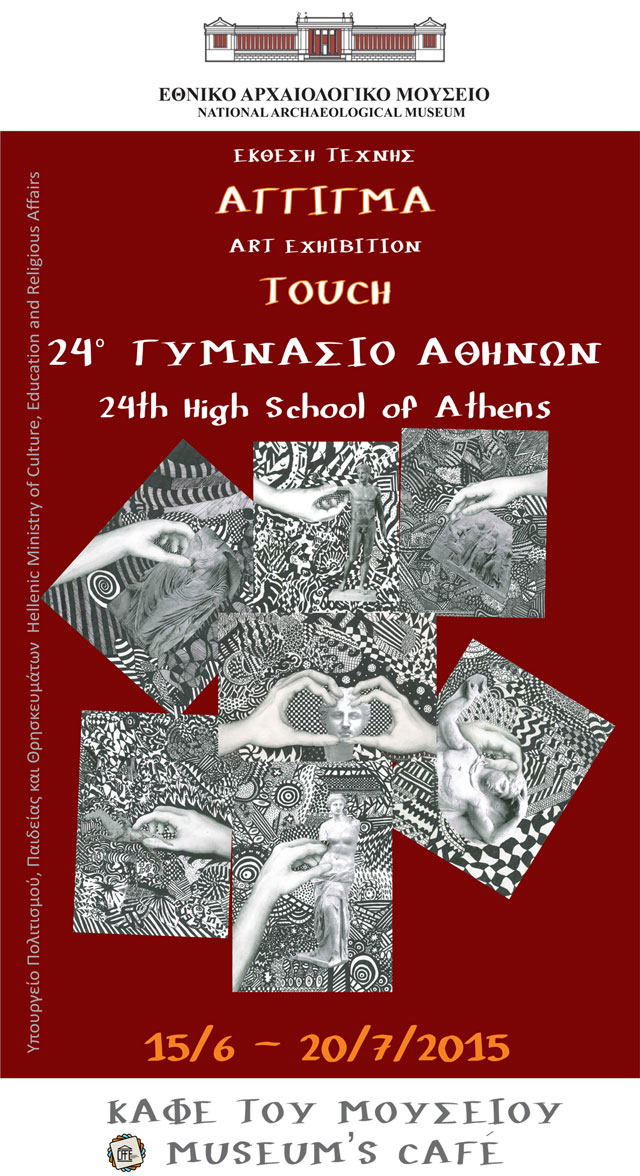 Έκθεση Τέχνης Άγγιγμα 15 Ιουνίου – 20 Ιουλίου 2015, Καφέ του Μουσείου Το Εθνικό Αρχαιολογικό Μουσείο, θέλοντας να είναι ενεργό κομμάτι της κοινωνίας και να λειτουργεί ως αγορά ιδεών και εστία πνευματικών αναζητήσεων, φιλοξενεί στους χώρους του Καφέ εκθέσεις σύγχρονης τέχνης. Με αυτόν τον τρόπο δίνει βήμα διαλόγου σε καλλιτέχνες και εικαστικές ομάδες της Ελλάδας και του εξωτερικού, προκειμένου να παρουσιάσουν τη δουλειά τους και τις διαδρομές τους στον χώρο της τέχνης και του πολιτισμού, ενώ ταυτόχρονα συμπληρώνει τη μουσειακή εμπειρία των επισκεπτών, προσφέροντας εικαστικά ερεθίσματα που μπορούν να λειτουργήσουν ως γέφυρα ανάμεσα στο παρελθόν και το παρόν, τον άνθρωπο και τα τέχνεργά του. Στην ιδιαίτερη περίπτωση του 24ου Γυμνασίου Αθηνών, το Εθνικό Αρχαιολογικό Μουσείο ανοίγει τις πύλες του, για να αγκαλιάσει την προσπάθεια των μαθητών της Β' τάξης, επιβραβεύοντας και αναδεικνύοντας την πολύ ενδιαφέρουσα εικαστική τους πρόταση. Το 24ο Γυμνάσιο Αθηνών συμμετείχε στο εκπαιδευτικό πρόγραμμα του Εθνικού Αρχαιολογικού Μουσείου «ΙΣΤΟΡΙΕΣ ΖΩΗΣ – ΙΣΤΟΡΙΕΣ ΑΛΛΗΛΕΓΓΥΗΣ: τα μουσειακά αντικείμενα ως πεδίο διερεύνησης της έννοιας της αλληλεγγύης στον πολιτισμό», στο πλαίσιο του οποίου εκπόνησε ετήσιο πολιτιστικό πρόγραμμα. Στόχος του προγράμματος ήταν η ευαισθητοποίηση των μαθητών σε θέματα διαχείρισης της πολιτιστικής κληρονομιάς και τους τρόπους με τους οποίους μπορούμε να εκφράσουμε την αλληλεγγύη μας σε ζητήματα προστασίας τους, δρώντας ως ενεργοί πολίτες. Η έκθεση «Άγγιγμα» περιλαμβάνει 37 έργα με μελάνι και μολύβι με γραφή διακοσμητική, τα οποία δημιούργησαν οι μαθητές με την υποστήριξη της καθηγήτριας εικαστικών Ζωής Βισβάρδη. Παίρνοντας έμπνευση από το χέρι του Εφήβου των Αντικυθήρων, χέρια εφηβικά κρατούν τρυφερά και αναδεικνύουν αριστουργήματα της πολιτιστικής μας κληρονομιάς. Με συμβολικό τρόπο οι μαθητές υπενθυμίζουν με ευαισθησία την ανάγκη για αρμονία, αλλά και δικαιοσύνη, συνεισφέροντας με τον τρόπο τους στον αγώνα για την επιστροφή των μαρμάρων του Παρθενώνα, αλλά και όλων των παράνομα εξαχθέντων αρχαιοτήτων, στη χώρα που τα γέννησε. Εγκαίνια: Δευτέρα 15 Ιουνίου 2015, ώρα 18:00 Διάρκεια: 15/6-20/7/2015 Διεύθυνση: Εθνικό Αρχαιολογικό Μουσείο, Πατησίων 44, Αθήνα 10682 Η είσοδος για το Καφέ είναι ελεύθερη. Πληροφορίες: www.namuseum.gr , Τηλ. 2132144891 & 213 2144837