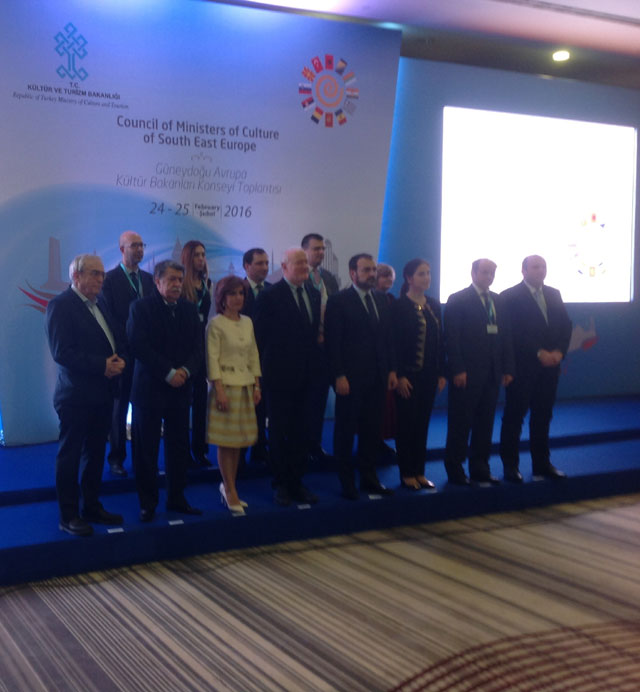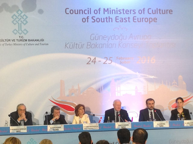 Ο Υπουργός Πολιτισμού και Αθλητισμού κ. Αριστείδης Μπαλτάς παραβρέθηκε στη 2η Σύνοδο του «Συμβουλίου Υπουργών Πολιτισμού της Νοτιοανατολικής Ευρώπης», που διεξήχθη στις 24 και 25 Φεβρουαρίου 2016, στην Κωνσταντινούπολη. Κεντρικό θέμα της Συνόδου, που συγκάλεσε η τουρκική προεδρία, ήταν η ενίσχυση του πολιτισμού για βιώσιμη ανάπτυξη.
