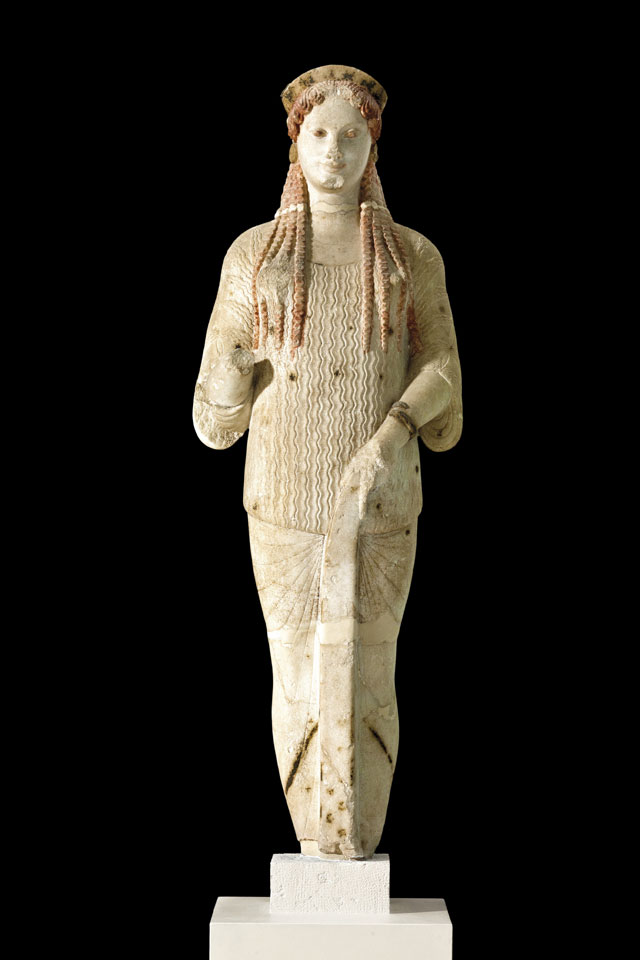 Οι Κόρες, τα μαρμάρινα αγάλματα νεαρών κοριτσιών, ήταν το πιο συνηθισμένο αφιέρωμα στο ιερό της Αθηνάς στην Ακρόπολη κατά την Αρχαϊκή Εποχή (6ος αι. - αρχές 5ου αι. π.Χ.). Τι αντιπροσωπεύουν δεν είναι γνωστό. Έχουν ερμηνευτεί ως θεές, ιέρειες, κορίτσια στην υπηρεσία της θεάς ή απλές θνητές. Όπως και τα άλλα γλυπτά της Ακρόπολης, έπεσαν θύμα της καταστροφικής μανίας των Περσών το 480 π.Χ. Η απόφαση των Αθηναίων να θάψουν τα συντρίμμια σε μεγάλους λάκκους στάθηκε η αιτία να διατηρηθούν τα ίχνη των χρωμάτων. Στις ανασκαφές της Ακρόπολης βρέθηκαν πάνω από 200 Κόρες διαφόρων μεγεθών, συμπεριλαμβανομένων και των θραυσμάτων τους, καθιστώντας αυτή τη συλλογή του Μουσείου Ακρόπολης τη μεγαλύτερη στον κόσμο.