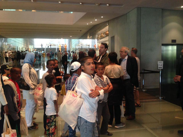 Στη συνέχεια, ο Υπουργός Πολιτισμού και Αθλητισμού υποδέχτηκε ομάδα προσφύγων στο Μουσείο Ακρόπολης, όπου συνομίλησε και φωτογραφήθηκε με παιδιά, στα οποία μοιράστηκαν δώρα στο τέλος της ξενάγησης.