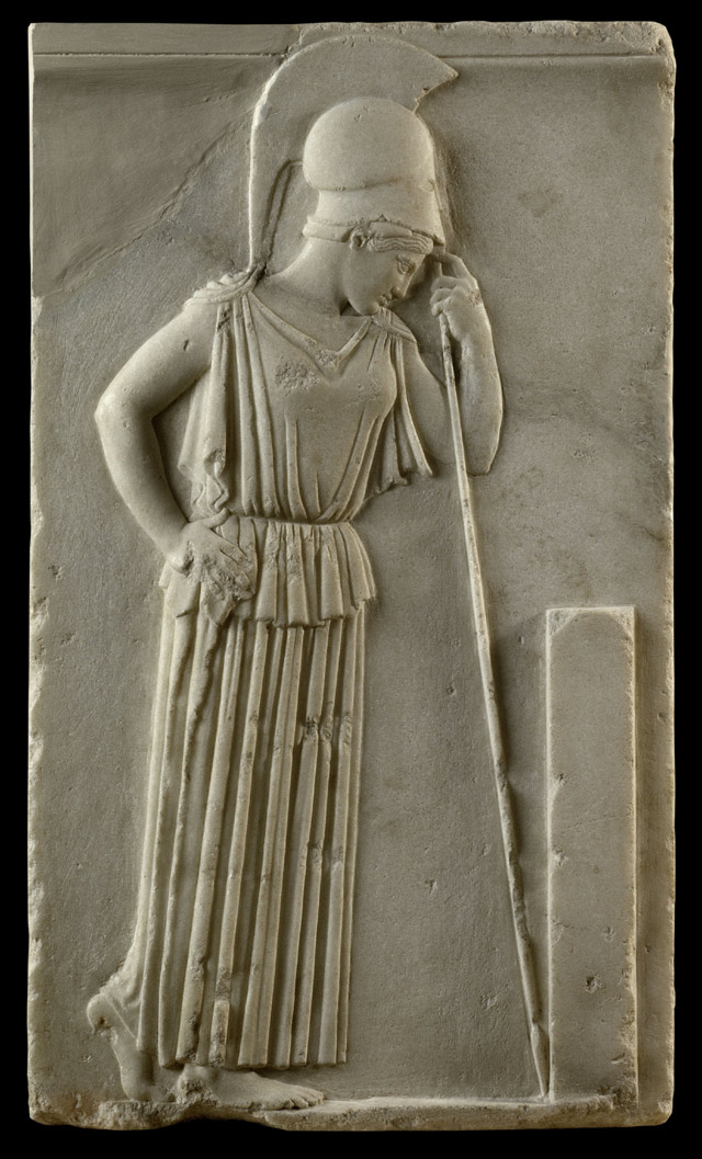 1. Ανάγλυφο «Σκεπτομένης Αθηνάς», περ. 460 π.Χ. Μουσείο Ακρόπολης, αρ. ευρ. Ακρ. 695.