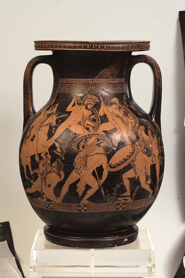 2. Πελίκη του «Ζωγράφου του Προνόμου» με παράσταση του θεού Άρη κατά των Γιγάντων, περ. 400 π.Χ. Εθνικό Αρχαιολογικό Μουσείο, αρ. ευρ. Α 1333.