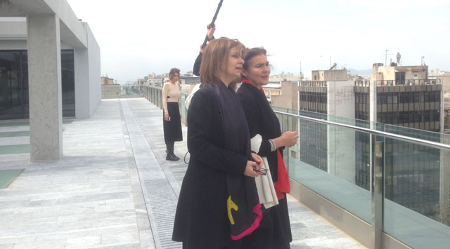 Με το πέρας της ξενάγησης συναντήθηκε με τα μέλη του Διοικητικού Συμβουλίου του ΕΜΣΤ και την καλλιτεχνική διευθύντρια οι οποίοι της εξέθεσαν τα θέματα τα οποία απασχολούν τον οργανισμό και συνδέονται με την ολοκλήρωση των διαδικασιών που θα οδηγήσουν στα επίσημα εγκαίνια του Μουσείου.