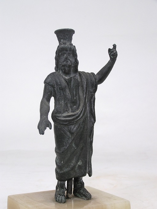 Εικ. 2. Χάλκινο ειδώλιο του θεού Σάραπι. Πρόκειται για συνδυασμό του ελληνικού θεού Δία με τους αιγυπτιακούς θεούς Όσιρι και Άπι. Ελληνιστική περίοδος, 332-30 π.Χ. (αρ. ευρ. 1633)