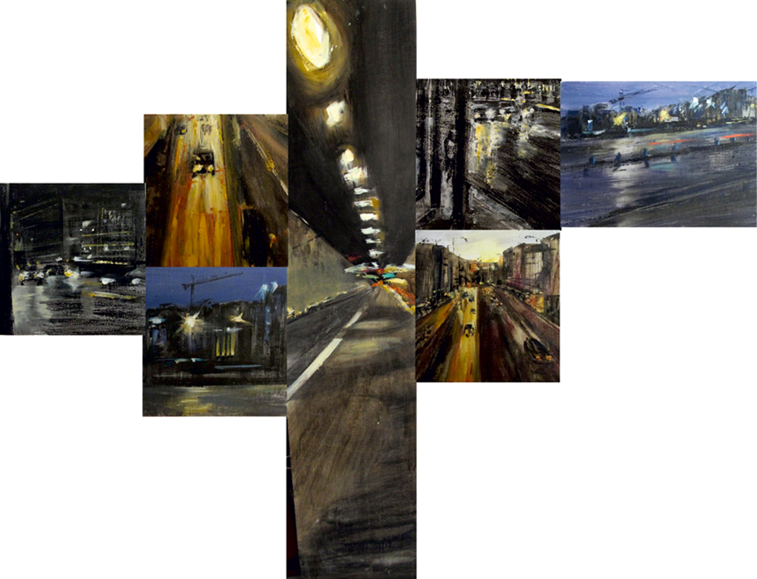 Η εικαστικός Μάτω Ιωαννίδου, μέσα από έργα με σινική, λάδια και μικτές τεχνικές, αποπειράται να αποδώσει την κίνηση και τη ρευστότητα της εποχής. Πορείες μοναχικές όπου απουσιάζει η ανθρώπινη φιγούρα και πρωταγωνιστούν οι δρόμοι, αλλά και πορείες-καραβάνια ανθρώπων που μας ακινητοποιούν με το βλέμμα τους. Μοναδικός προορισμός η συνάντηση με τον Άλλον. Όπως σημειώνει η ίδια: