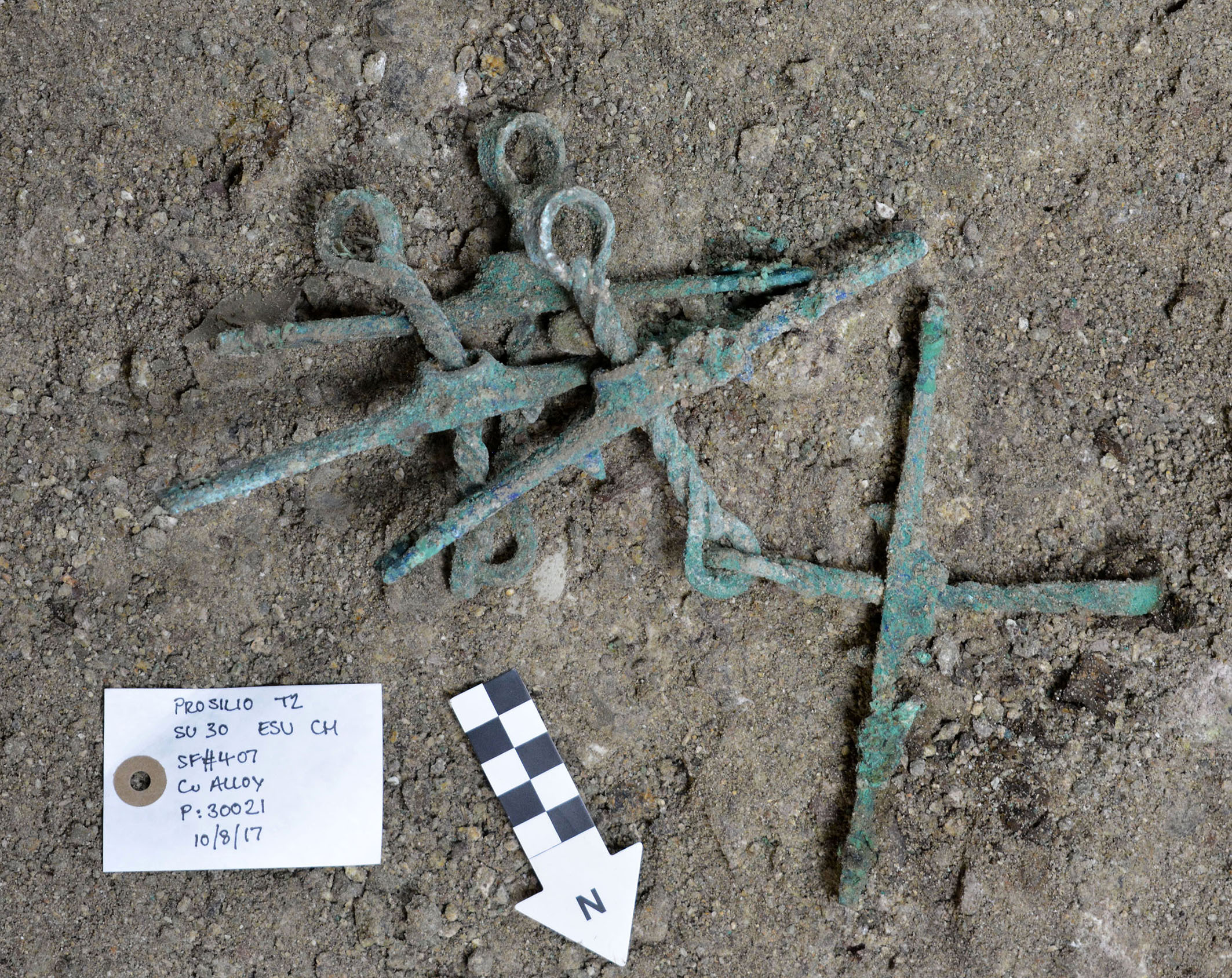 2: Θαλαμοειδής τάφος Προσηλίου. Ζεύγος στομίδων (εξαρτημάτων χαλιναριών αλόγων), όπως βρέθηκαν στην ανασκαφή. Φωτογραφία: Γιάννης Γαλανάκης.