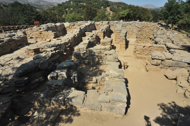 Δύο είναι οι νέες είσοδοι, εκ των οποίων η πρώτη στην Βορειοανατολική γωνία του ανακτόρου είναι ιδιαίτερα προσεγμένη διαθέτοντας και προθάλαμο με θρανία στις δύο πλευρές του (Φωτ.3). H είσοδος αυτή οδηγεί μέσω ενός μεγάλου διαδρόμου στο σπουδαίο ιερό της ανατολικής πτέρυγας στο οποίο έχουν αποκαλυφθεί ήδη βαθμιδωτός βωμός και βόθρος.