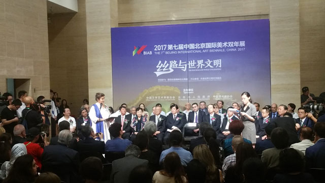 Αφιερωματική ειδική έκθεση με θέμα «Το Σώμα–Η Ψυχή–Ο Τόπος. Σύγχρονοι Έλληνες Καλλιτέχνες» του Κρατικού Μουσείου Σύγχρονης Τέχνης φιλοξενείται από 24 Σεπτεμβρίου στην Εθνική Πινακοθήκη Κίνας, στο πλαίσιο της «7ης Μπιενάλε Σύγχρονης Τέχνης» του Πεκίνου (24/9 -15/10/2017). Την έκθεση εγκαινίασε η Υπουργός Πολιτισμού και Αθλητισμού, Λυδία Κονιόρδου το πρωί της 24ης Σεπτέμβρη. Η κα Κονιόρδου ήταν η κεντρική, μοναδική ξένη ομιλήτρια της Έκθεσης και τιμώμενο πρόσωπο της εκδήλωσης. Φορέας-διοργανωτής της έκθεσης είναι το Κρατικό Μουσείο Σύγχρονης Τέχνης της Θεσσαλονίκης. Την έκθεση επιμελούνται η Μαρία Τσαντσάνογλου, διευθύντρια του Κρατικού Μουσείου Σύγχρονης Τέχνης και η Συραγώ Τσιάρα, διευθύντρια του Κέντρου Σύγχρονης Τέχνης Θεσσαλονίκης.