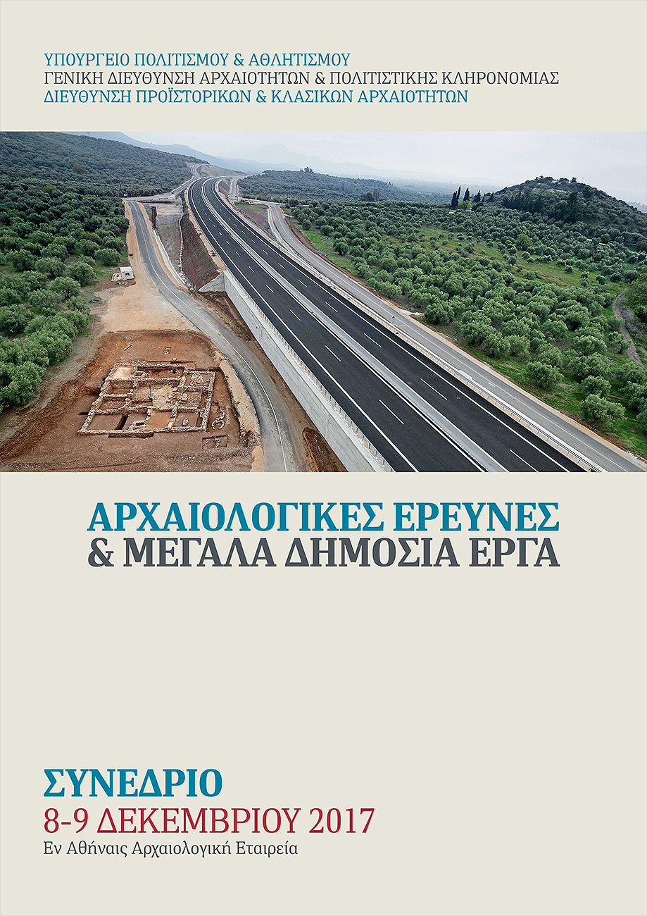 Η Διεύθυνση Προϊστορικών και Κλασικών Αρχαιοτήτων του Υπουργείου Πολιτισμού και Αθλητισμού διοργανώνει Επιστημονικό Συνέδριο με θέμα «Αρχαιολογικές Έρευνες και Μεγάλα Δημόσια Έργα», το οποίο θα διεξαχθεί στις 8 και 9 Δεκεμβρίου 2017 στην Εν Αθήναις Αρχαιολογική Εταιρεία (Πανεπιστημίου 22, Αθήνα).