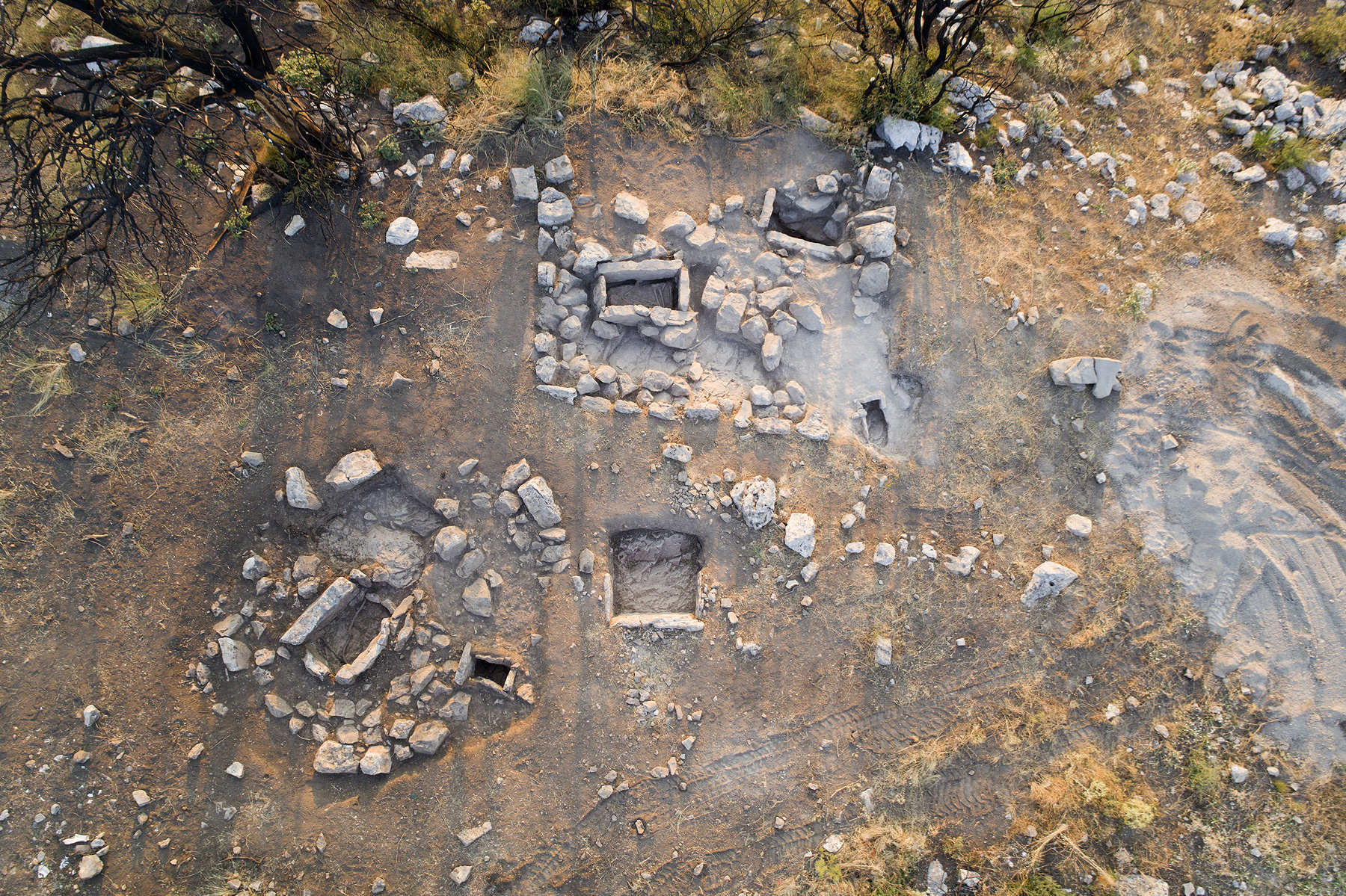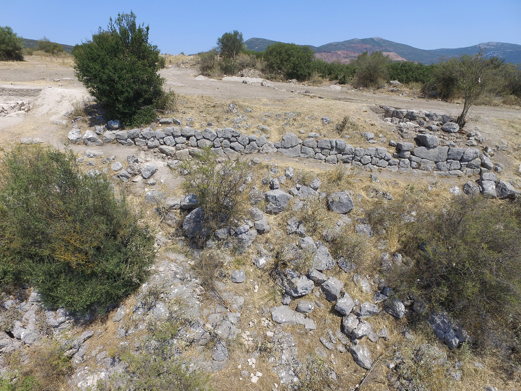 Στις δύο αυτές θέσεις εντοπίστηκαν τμήματα οχύρωσης, κατάλοιπα οικιών με λίθινα τοιχόβαθρα και ανωδομή από πλίθρες, καθώς και ταφές κάτω από τα δάπεδά τους, ενδεχομένως παιδικές, που εμπλουτίζουν τα υπάρχοντα στοιχεία σχετικά με τη συνύπαρξη ζώντων και νεκρών σε Μεσοελλαδικές οικιστικές θέσεις της ηπειρωτικής Ελλάδας. Καθώς το έδαφος στις δύο θέσεις είναι εξαιρετικά βραχώδες για εκμετάλλευση, δεν αποκλείεται οι κάτοικοί τους να είχαν επιτύχει τη δημιουργία καλλιεργήσιμου χώρου στις παρυφές της λίμνης, υπόθεση, που αν επιβεβαιωθεί, ενισχύει την άποψη ορισμένων ερευνητών για το μεσοελλαδικό υπόβαθρο των αποστραγγιστικών έργων.