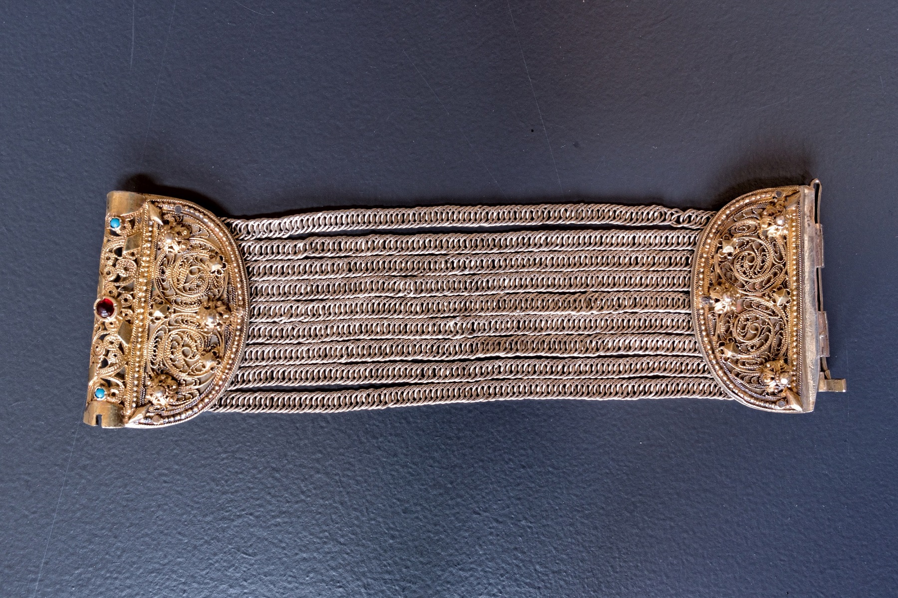 Ένα αγαλμάτιο της θεάς Αφροδίτης πλαισιωμένης από φτερωτούς Έρωτες καλωσορίζει τον επισκέπτη, ο οποίος στη συνέχεια θα έχει την ευκαιρία να θαυμάσει κυκλαδικά ειδώλια, αγγεία και έργα μικροτεχνίας. Ιδιαίτερη θέση στο Μουσείο Αργυροτεχνίας έχουν τα χρυσά κοσμήματα, κομψοτεχνήματα της αρχαιότητας από τις συλλογές του ΕΑΜ, τα οποία συνδιαλέγονται με ασημένια κοσμήματα και εξαρτήματα ενδυμάτων των νεότερων χρόνων (19ος-20ός αιώνας). Ως προς τα τελευταία, πρόκειται για αντικείμενα που είτε ανήκουν στη συλλογή του Μουσείου Αργυροτεχνίας είτε τα παραχώρησαν στο ΠΙΟΠ, για τις ανάγκες της έκθεσης, το Τμήμα Κληροδοτημάτων του Δήμου Ιωαννιτών, το Δημοτικό Μουσείο Ιωαννίνων, το Μουσείο Αλή Πασά και Επαναστατικής Περιόδου (Συλλογή Φώτη Ραπακούση) και ο ιδιώτης κ. Κωνσταντίνος Ιωαννίδης. Τα περισσότερα από αυτά προέρχονται από τα Ιωάννινα και την ευρύτερη περιοχή της Ηπείρου, ενώ υπάρχουν αντιπροσωπευτικά δείγματα και από άλλες περιοχές της Ελλάδας. Με τεχνικές μορφοποίησης, όπως η σφυρηλάτηση και η χύτευση, και τεχνικές διακόσμησης, όπως η φουσκωτή, το σαβάτι και το σμάλτο, αλλά και με μεικτές τεχνικές, όπως το δημοφιλές φιλιγκράν, οι τεχνίτες αποτυπώνουν στα κοσμήματα τη συλλογική αισθητική, την ιστορική μνήμη, αλλά και την κοινωνική και εθνική ταυτότητα των κατόχων τους. Η ποικιλία τεχνικών κατασκευής και διακόσμησης με τα οποία φιλοτεχνήθηκαν αναδεικνύουν την κληροδοτημένη τεχνογνωσία αλλά και την υψηλή τέχνη και εκλέπτυνση των δημιουργών τους.