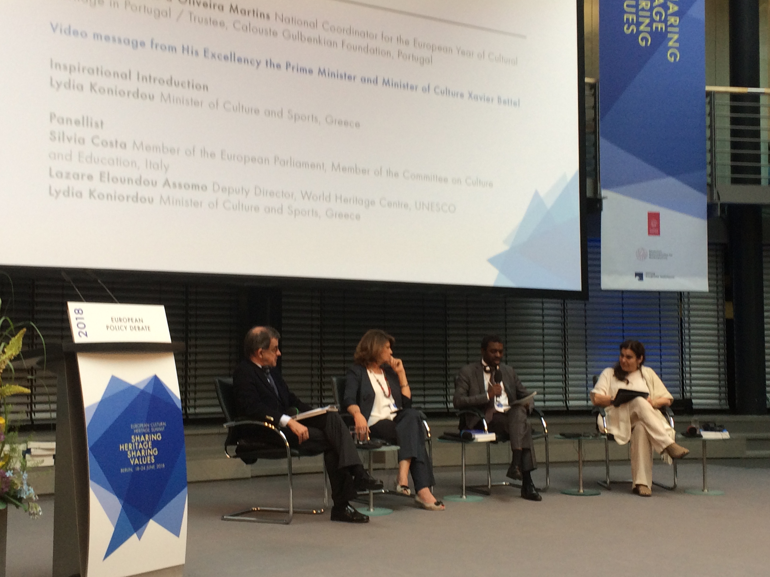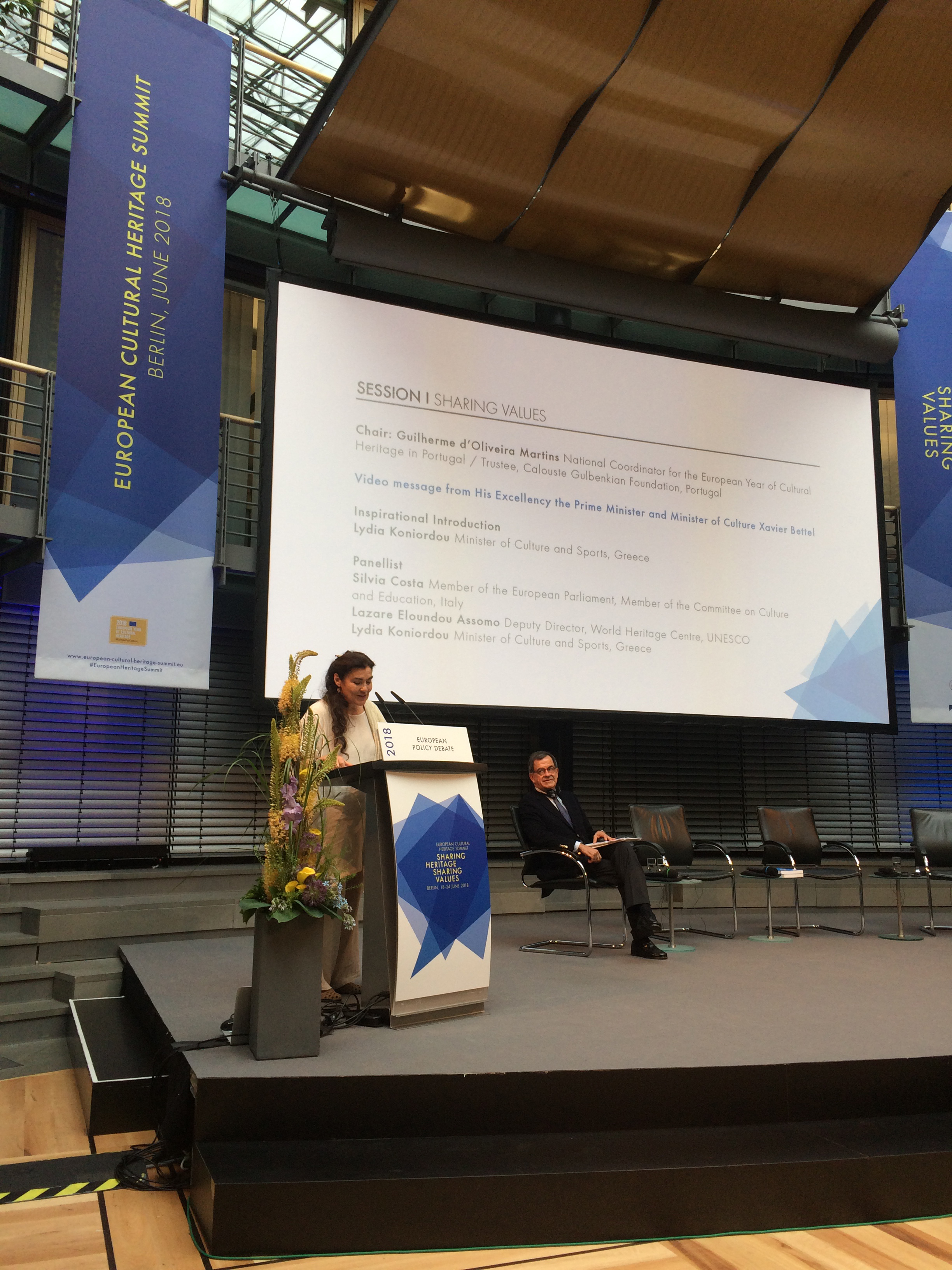 «Η κοινή πολιτιστική μας κληρονομιά βρίσκεται στον πυρήνα της Ευρωπαϊκής μας ταυτότητας. Ο πολιτισμός όπως εκφράζεται στα μεγάλα καλλιτεχνικά επιτεύγματα αλλά και σε όλες τις πτυχές της καθημερινότητά μας, μας διδάσκει την συνύπαρξη μέσα από τη διαφορά, την αλληλεγγύη καθώς και την δημιουργία μέσα από την ανταλλαγή» ανέφερε η Υπουργός Πολιτισμού και Αθλητισμού, Λυδία Κονιόρδου, στην έναρξη της συνάντησης την Πέμπτη 21 Ιουνίου στην οποία ήταν παρόντες μεταξύ άλλων η ομοσπονδιακή Υπουργός Πολιτισμού της Γερμανίας, Monika Grütters και ο Επίτροπος Πολιτισμού, Παιδείας και Άθλησης Tibor Navracsics.