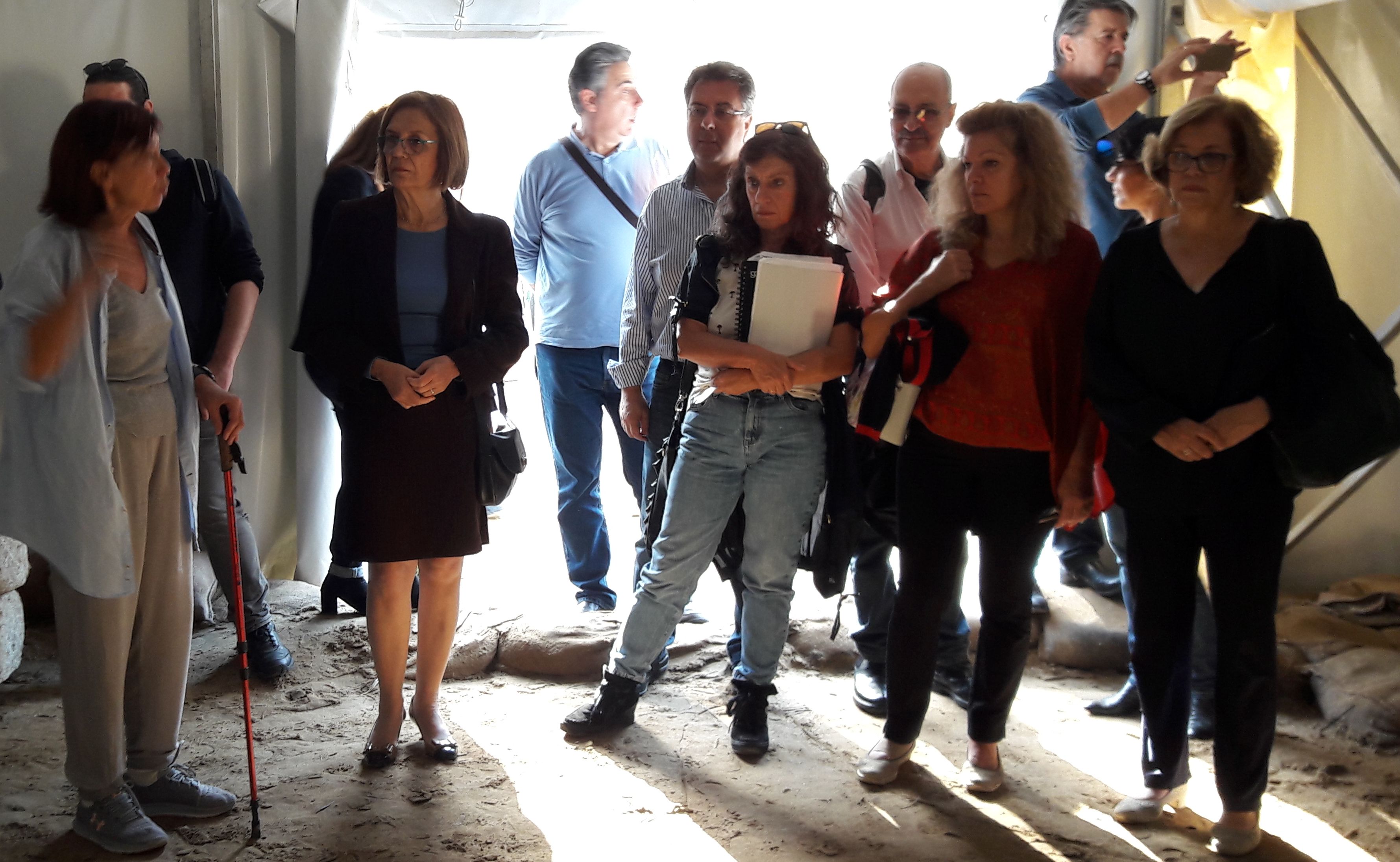 Η Υπουργός συνοδευόταν από τη Γενική Γραμματέα του ΥΠΠΟΑ Μαρία Ανδρεαδάκη Βλαζάκη και από στελέχη των αρμόδιων Γενικών Διευθύνσεων και των υπηρεσιών του ΥΠΠΟΑ, και ξεναγήθηκε από την ανασκαφέα και Έφορο Αρχαιοτήτων Πειραιώς και Νήσων Στέλλα Χρυσουλάκη.