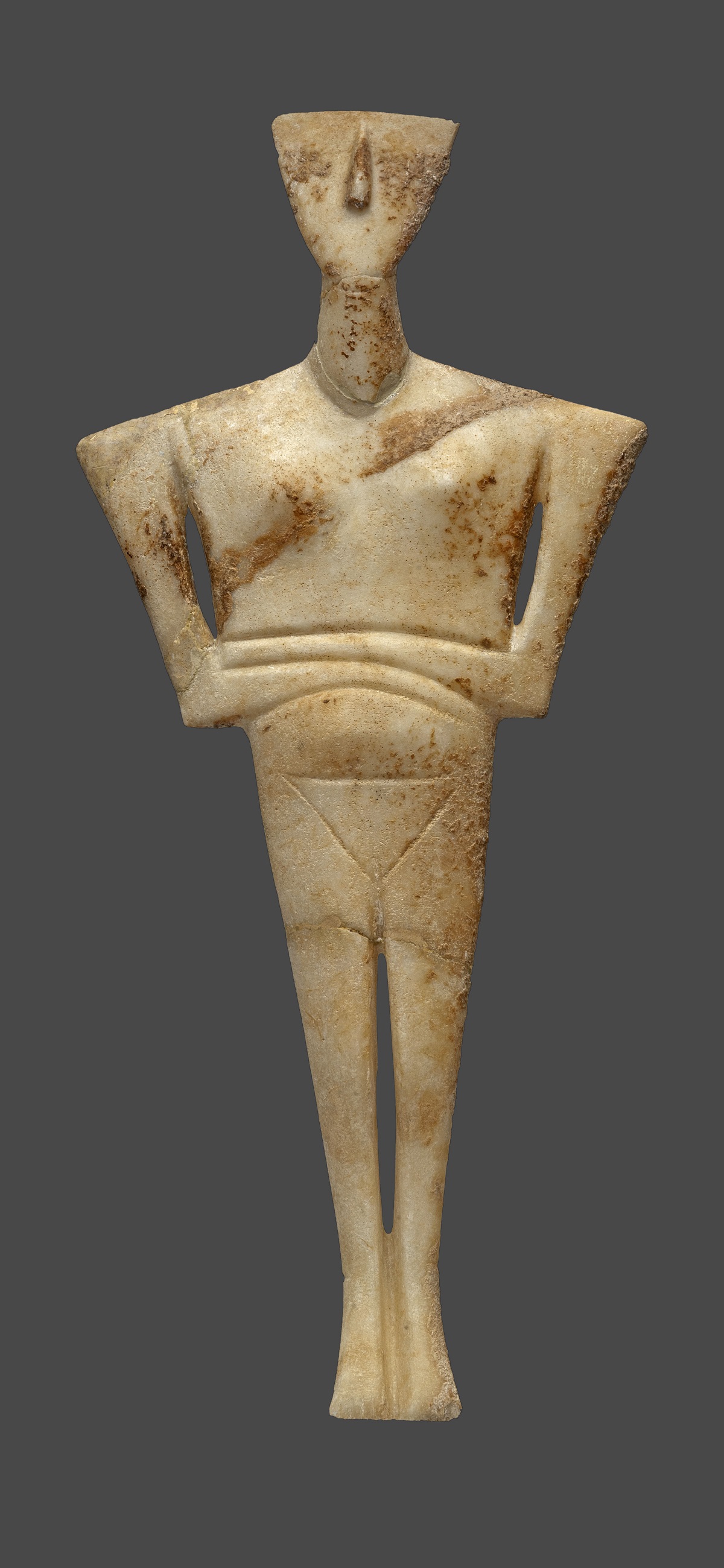 Εικ. 3. Μαρμάρινο ειδώλιο γυναικείας μορφής (παραλλαγή Δωκαθισμάτων), από το νεκροταφείο Χαλανδριανής Σύρου (2700-2300 π.Χ.), © ΕΑΜ/ΤΑΠ.