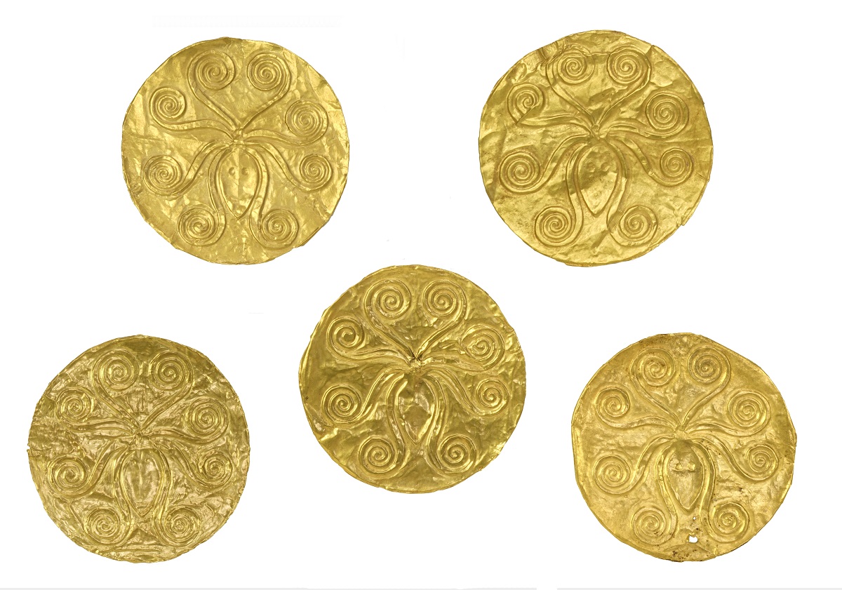 Εικ. 6. Χρυσά δισκάρια με διακόσμηση χταποδιού από τον Ταφικό Κύκλο Α΄ των Μυκηνών (16ος αι. π.Χ.), © ΕΑΜ/ΤΑΠ.
