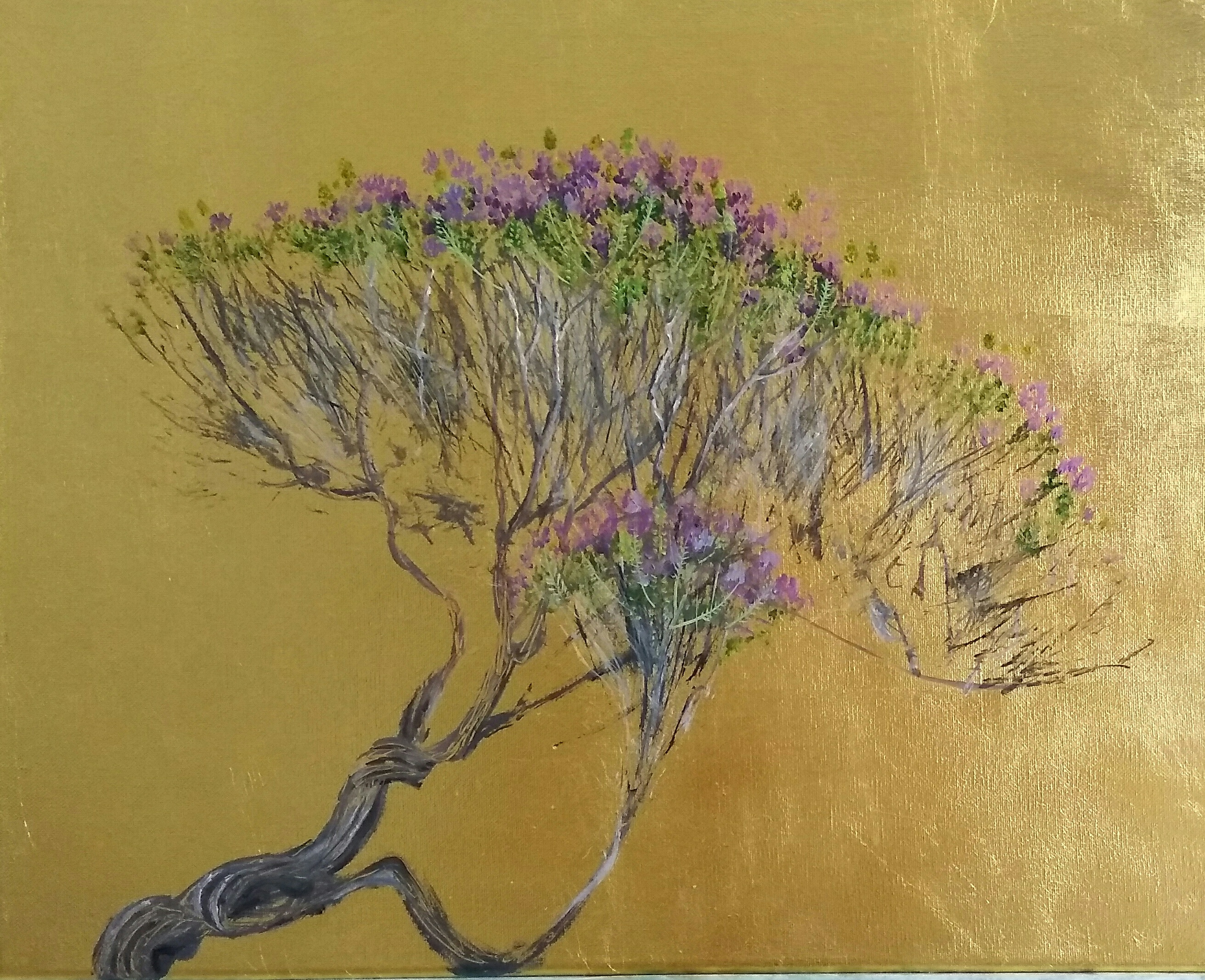 Τα έργα του, μεσογειακά και ελληνικά φυτά και λουλούδια κατά κύριο λόγο αλλά και ορισμένες αποτυπώσεις συναρπαστικών λεπτομερειών από γλυπτά του κήπου και αρχαία έργα μικροτεχνίας, ζωγραφισμένα με θαυμαστή, αγιογραφική σχεδόν ενδελέχεια επάνω σε χρυσό και μελανό βάθος, συναρμολογούν έναν παραδεισένιο μικρόκοσμο, έναν γνωστό-άγνωστο ευτυχισμένο τόπο στην καρδιά της Αθήνας. Έναν τόπο αναψυχής και προσμονής, έναν τόπο μαγείας και απομάγευσης, έναν ελληνικό ιδανικό τόπο όπου βασιλεύουν η χωρίς όρια ομορφιά και η χάρις, η απόλαυση του βλέμματος και η γνώση.