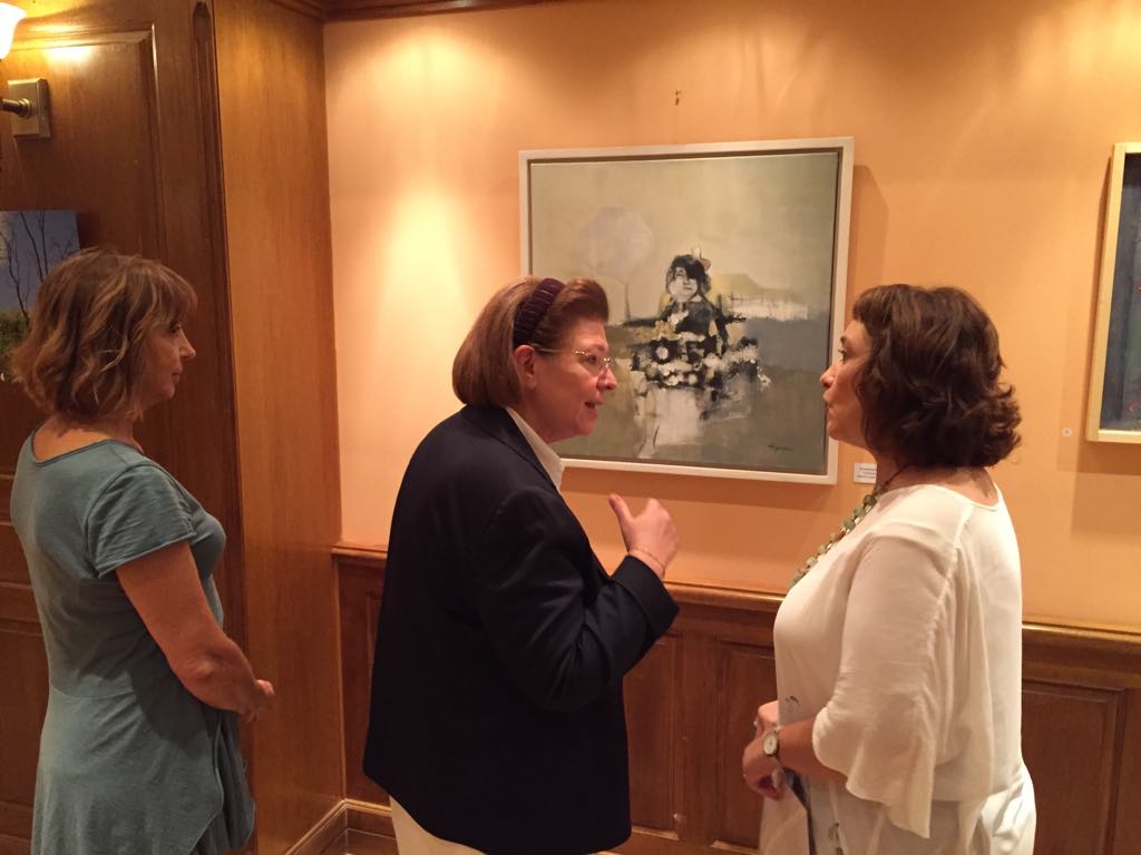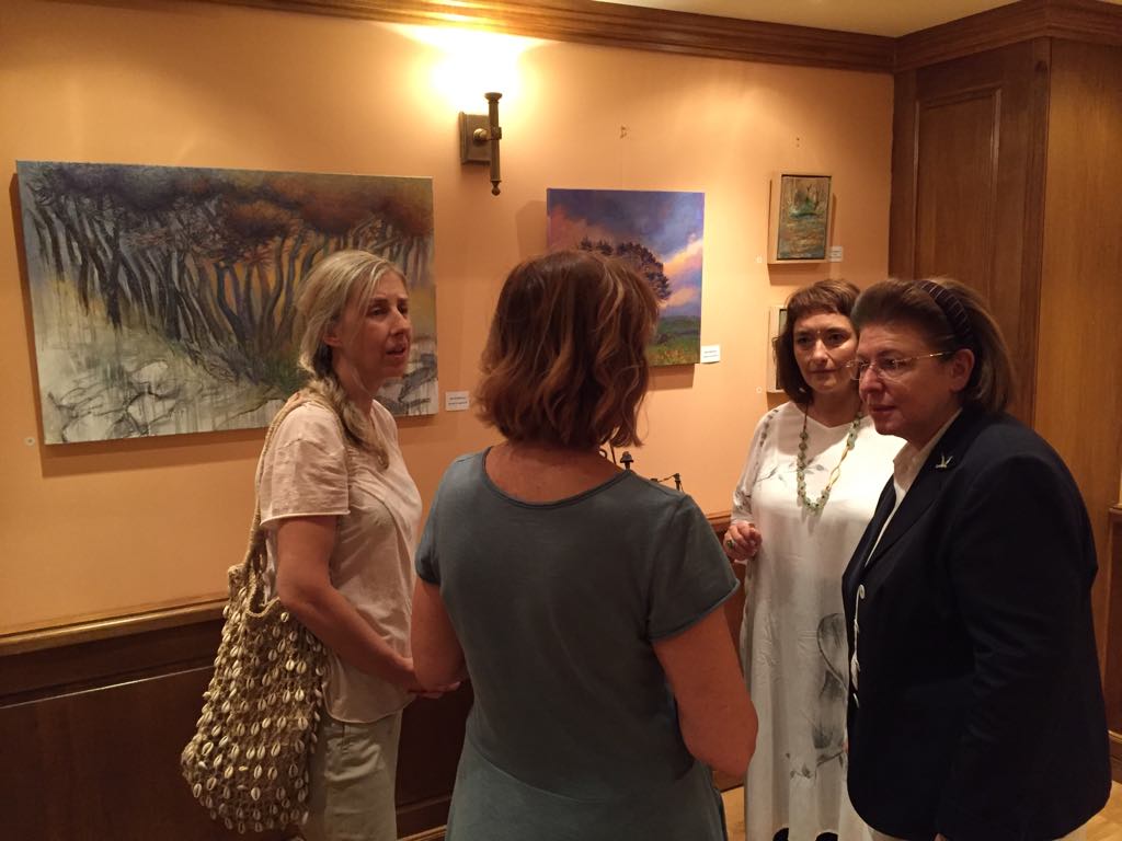 Την έκθεση επισκέφθηκε η Υπουργός Πολιτισμού και Αθλητισμού, κ. Λίνα Μενδώνη, και συνομίλησε τόσο με τους δημιουργούς-δωρητές, όσο και με τους εγκαυματίες.