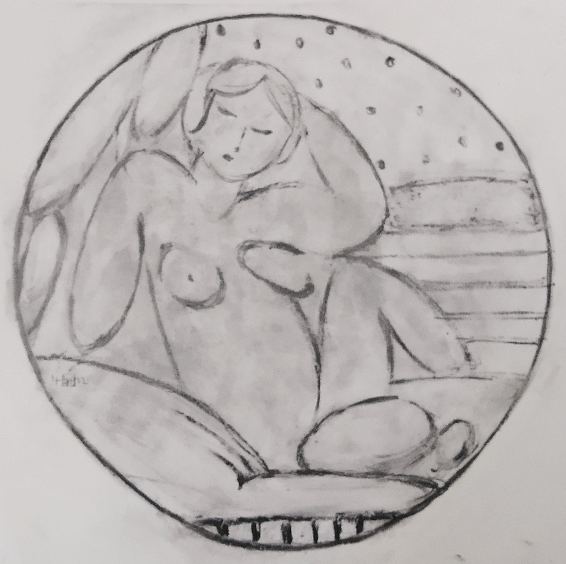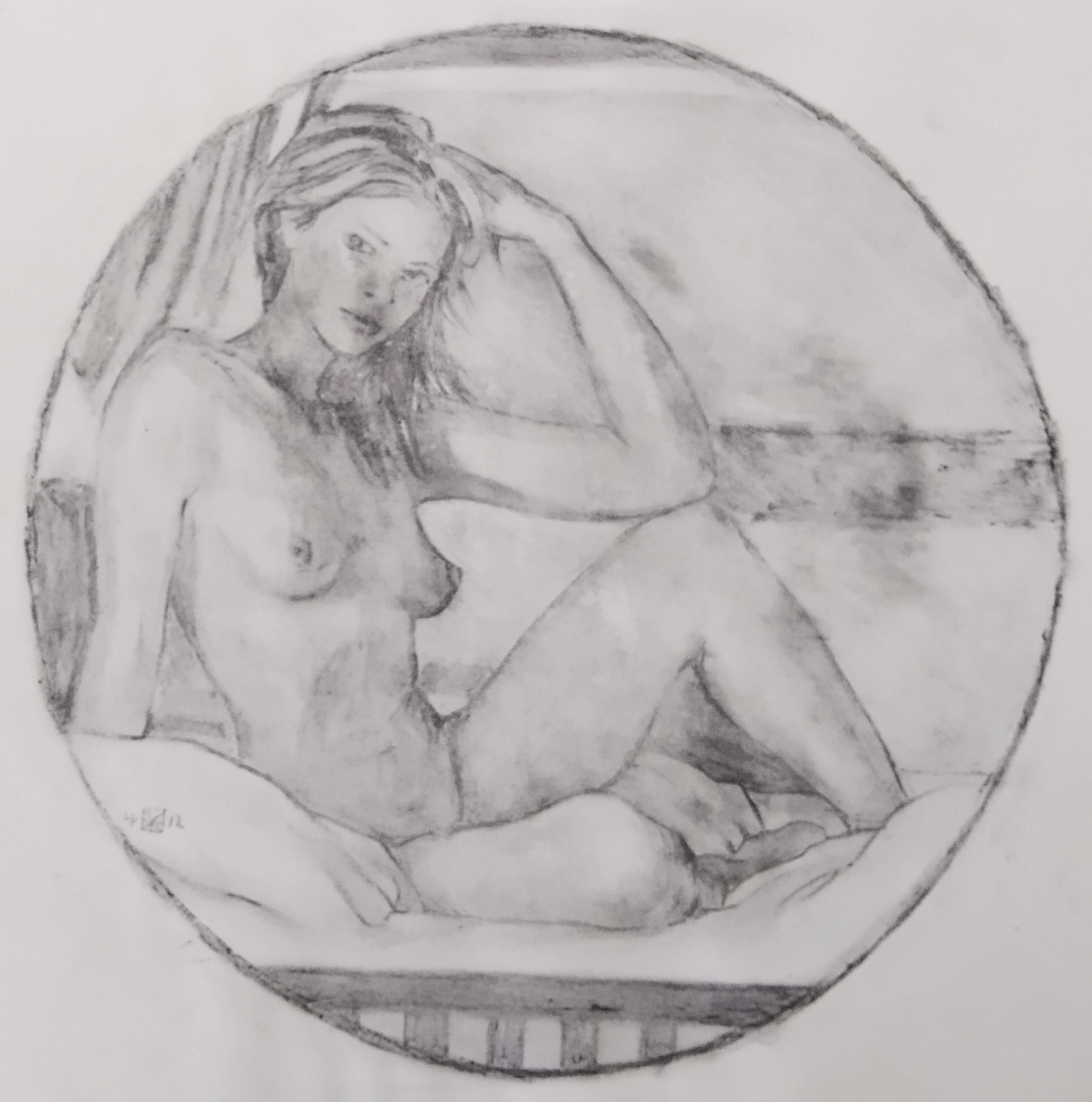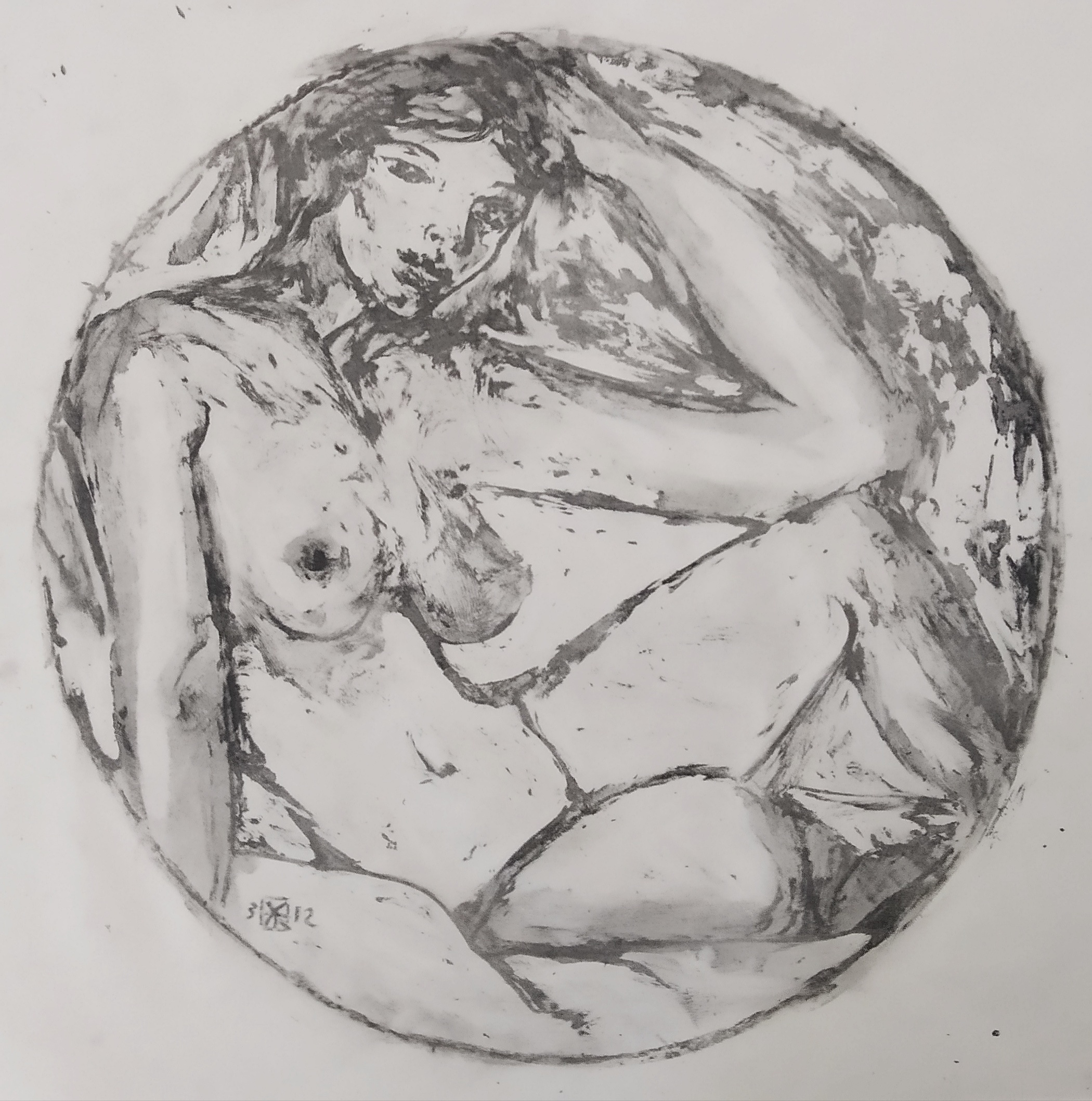 Στην έκθεση παρουσιάζονται σε μονοτυπίες ίσων διαστάσεων τριάντα αντιπροσωπευτικά δείγματα από 140 παραλλαγές του ιδίου θέματος (γυναικείο γυμνό εσωτερικού χώρου σε κυκλικό πλαίσιο) που φιλοτέχνησε ο Γιώργης Βραχνός το 2012 στη Νέα Υόρκη.