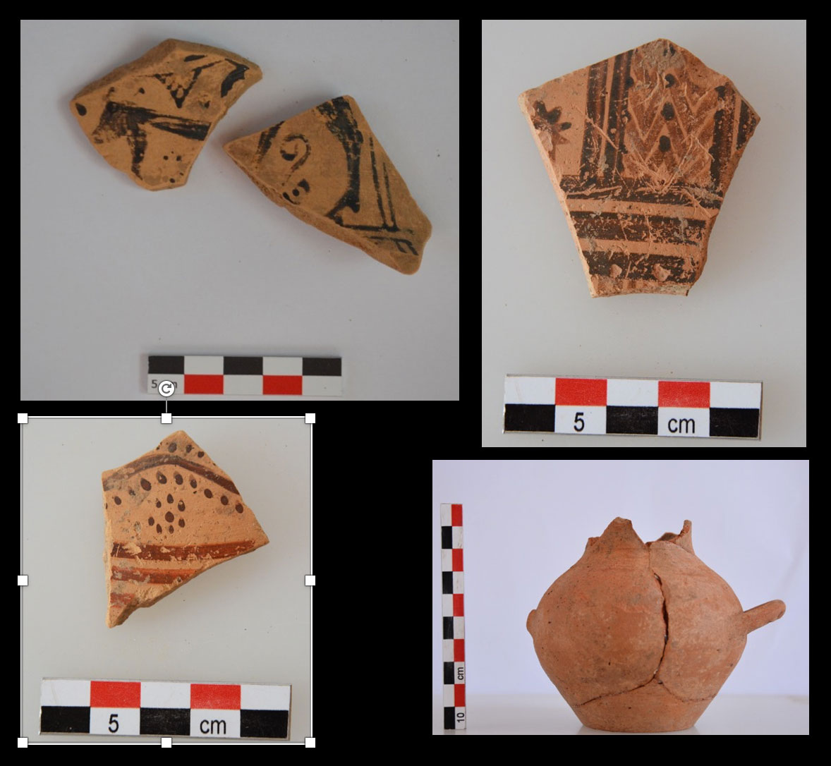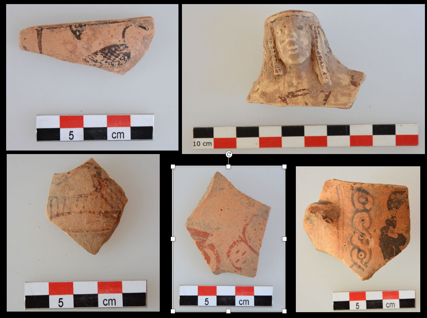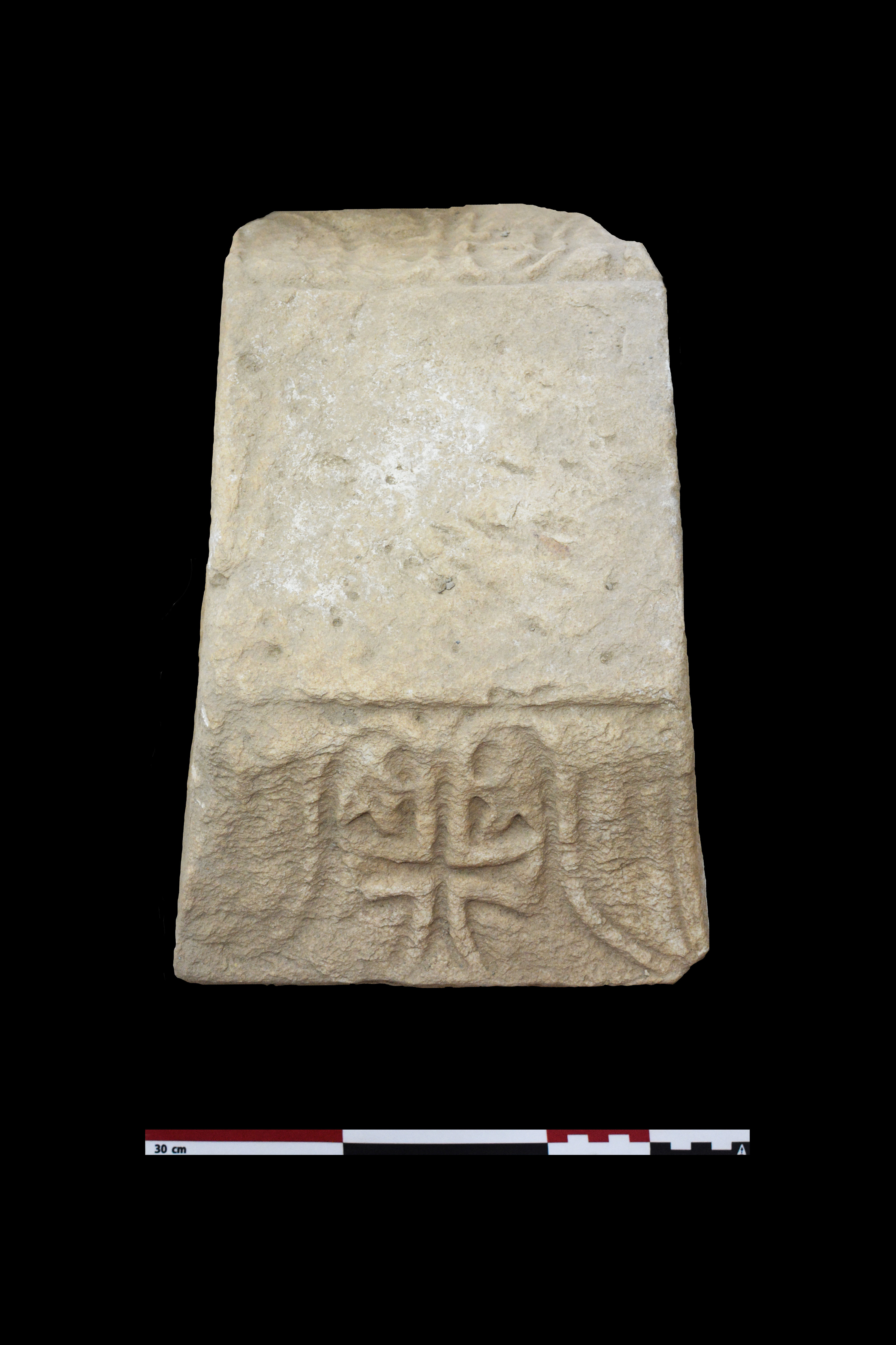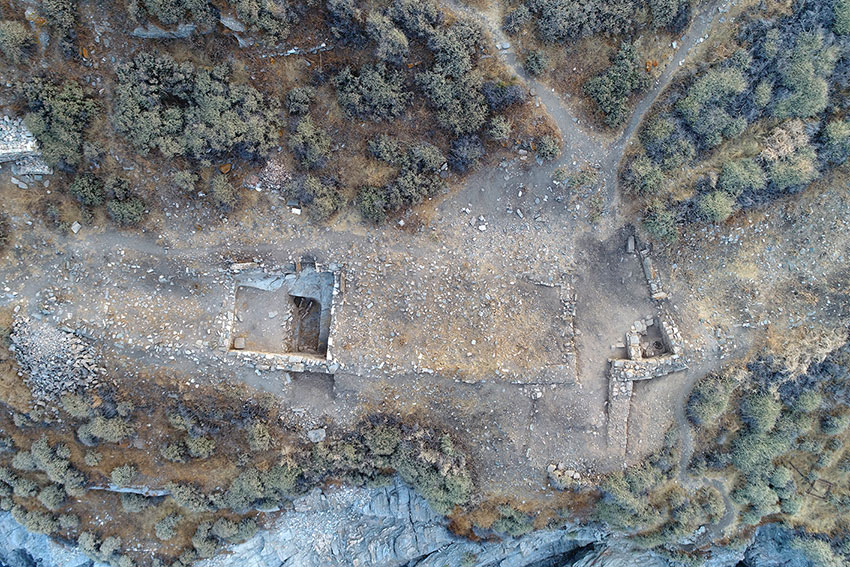 Στο νότιο ανώτερο πλάτωμα της νησίδας αποκαλύφθηκε μνημειώδες ανάλημμα, μήκους σχεδόν 22 μέτρων, που προσωρινά μπορεί να χρονολογηθεί στους κλασικούς χρόνους, τόσο από την ισόδομη τοιχοποιία του, όσο και από την κεραμεική που συλλέχθηκε εντός του στρώματος «λατύπης» που συνδέεται με την κατασκευή του (εικ. 3). Τα ευρήματα είναι εξαιρετικής ποιότητας κεραμεική των Γεωμετρικών και αρχαϊκών χρόνων, καθώς και ορισμένα ευρήματα αναμφίβολα αναθηματικού χαρακτήρα (μικρογραφικά αγγεία, πήλινα γυναικεία ειδώλια, κ.ά.) (εικ. 4-6). Σε απόσταση 5 μέτρων ανατολικά του αναλήμματος, ο λαξευμένος βράχος σχηματίζει ορθογώνιο έξαρμα διαστάσεων 11x4 μ. περίπου, εξαιρετικά διαβρωμένο σήμερα, το οποίο φαίνεται ότι ταυτίζεται με μνημειώδη βωμό (σε πρώτο πλάνο στην εικ. 3). Το ανάλημμα σχηματίζει ένα είδος κρηπίδας ύψους 4,50 μ., δυτικά του οποίου ο φυσικός βράχος σχηματίζει ένα ευρύχωρο άνδηρο με πολυάριθμα ίχνη από αρχαία λαξεύματα, ορισμένα από τα οποία φαίνεται ότι σχετίζονται με κάποιο μνημειώδη ναό που προφανώς είχε ιδρυθεί εδώ. Η προσεκτική μελέτη των λαξευμάτων αυτών ίσως επιτρέψει να αποσαφηνιστεί ως έναν βαθμό η μορφή του κλασικού-ελληνιστικού ναού. Η ταυτότητα της λατρευόμενης θεότητας παραμένει άγνωστη προς το παρόν.