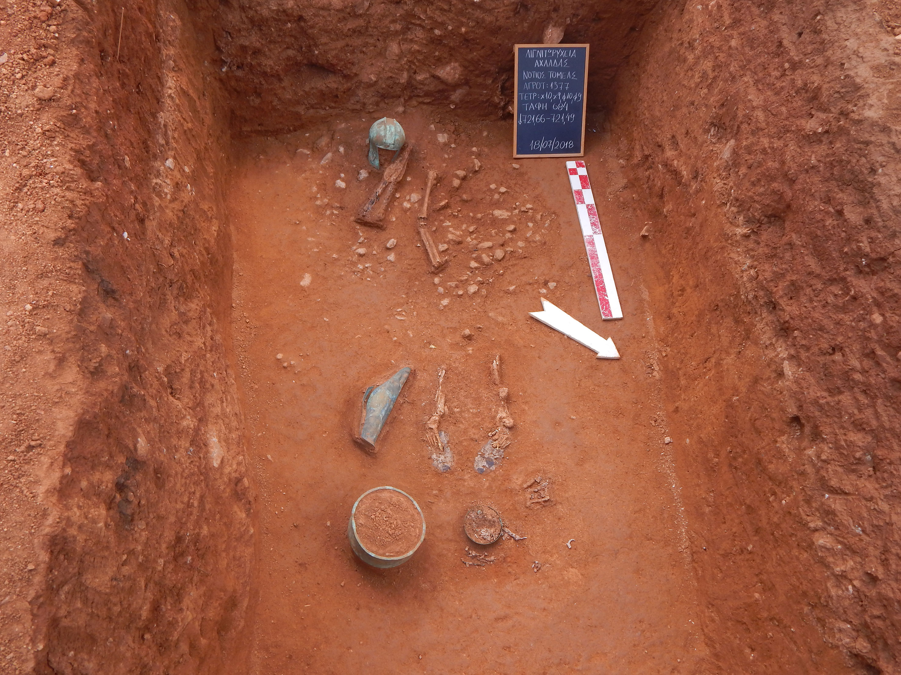Για πρώτη φορά ήρθαν στο φως χάλκινα κράνη του λεγόμενου "ιλλυρικού τύπου", τέσσερα συνολικά, που διαφοροποιούν τους νεκρούς ως προς την οπλιτική τους εξάρτυση από τους υπόλοιπους πολεμιστές της Αχλάδας. Ξεχωρίζει ο τάφος ενός πολεμιστή, εν μέρει συλημένος, στον οποίο διατηρήθηκαν μεταξύ άλλων, χάλκινο κράνος "ιλλυρικού τύπου", χάλκινη περικνημίδα, σιδερένια δόρατα, σιδερένιο ομοίωμα δίκυκλης αγροτικής άμαξας, χρυσά ελάσματα και αργυρά καττύματα.