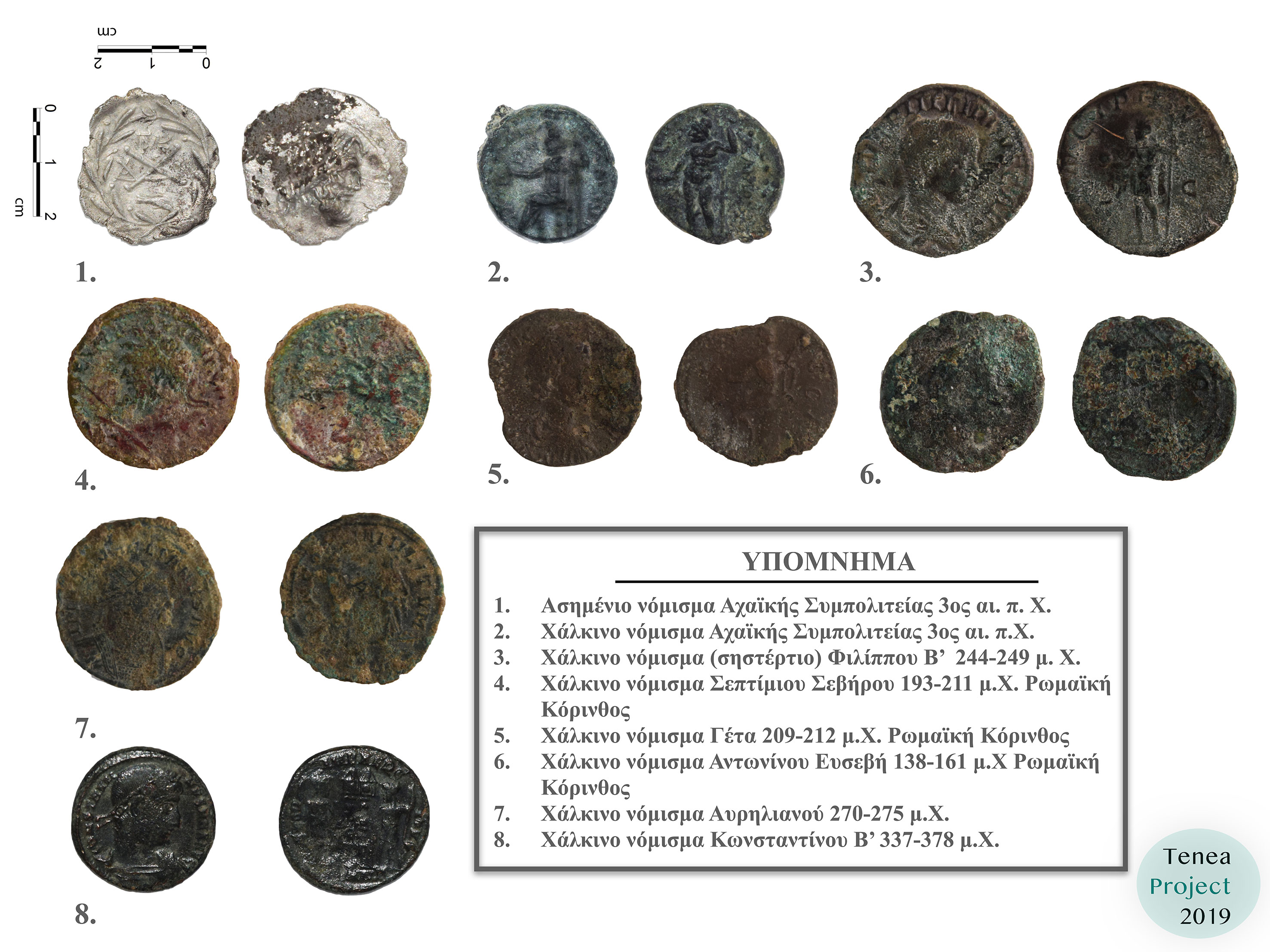 Οι ανασκαφικές έρευνες το 2019 στο Χιλιομόδι Κορινθίας, στο πλαίσιο του ερευνητικού προγράμματος «Αρχαίας Τενέας», αποκάλυψαν μέρος του κεντρικού ιστού της πόλης με δημόσια κτίρια συνολικής έκτασης 600 τ.μ. Συγκεκριμένα, ανασκάφηκε τμήμα δημόσιου λουτρικού συγκροτήματος ρωμαϊκών χρόνων, καθώς και μέρος δημόσιου κτιρίου λατρευτικής χρήσης αρχαϊκών χρόνων. Τα φετινά αρχαιολογικά κατάλοιπα εντοπίστηκαν δυτικά και σε μικρή απόσταση από τις οικιστικές εγκαταστάσεις που ανασκάφηκαν το 2018 και προσφέρουν σημαντικά στοιχεία για τους κεντρικούς δημόσιους χώρους της αρχαίας πόλης. Ταυτόχρονα διενεργήθηκε ευρείας κλίμακας επιφανειακή έρευνα που απέδωσε πολλές καινούργιες πληροφορίες για την τοπογραφία της περιοχής. Μεταξύ των ευρημάτων ξεχωρίζουν ασημένια και χάλκινα νομίσματα της ελληνιστικής περιόδου.