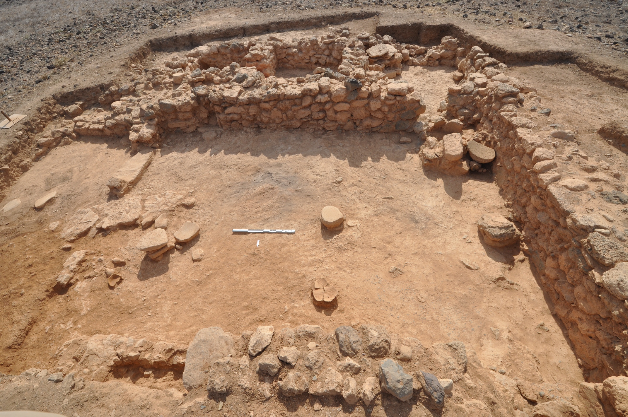 Τα δωμάτια είχαν απλά αρχιτεκτονικά στοιχεία όπως κτιστούς κάδους, πεζούλια, επιφάνειες εργασίας, εστίες και ένα κλιμακοστάσιο με λίθινες πλάκες. Η κεραμική αποτελεί τυπικό μίγμα από αγγεία πόσης, βρώσης, μαγειρικά και αποθηκευτικά, ενώ περισυλλέχθηκαν πολλά λίθινα εργαλεία. Εντύπωση προκάλεσε η έλλειψη στοιχείων βιοτεχνικής δραστηριότητας για την παραγωγή πορφύρας από όλο το κτίσμα, σε αντίθεση με τις άλλες ανασκαμμένες κατοικίες του οικισμού.