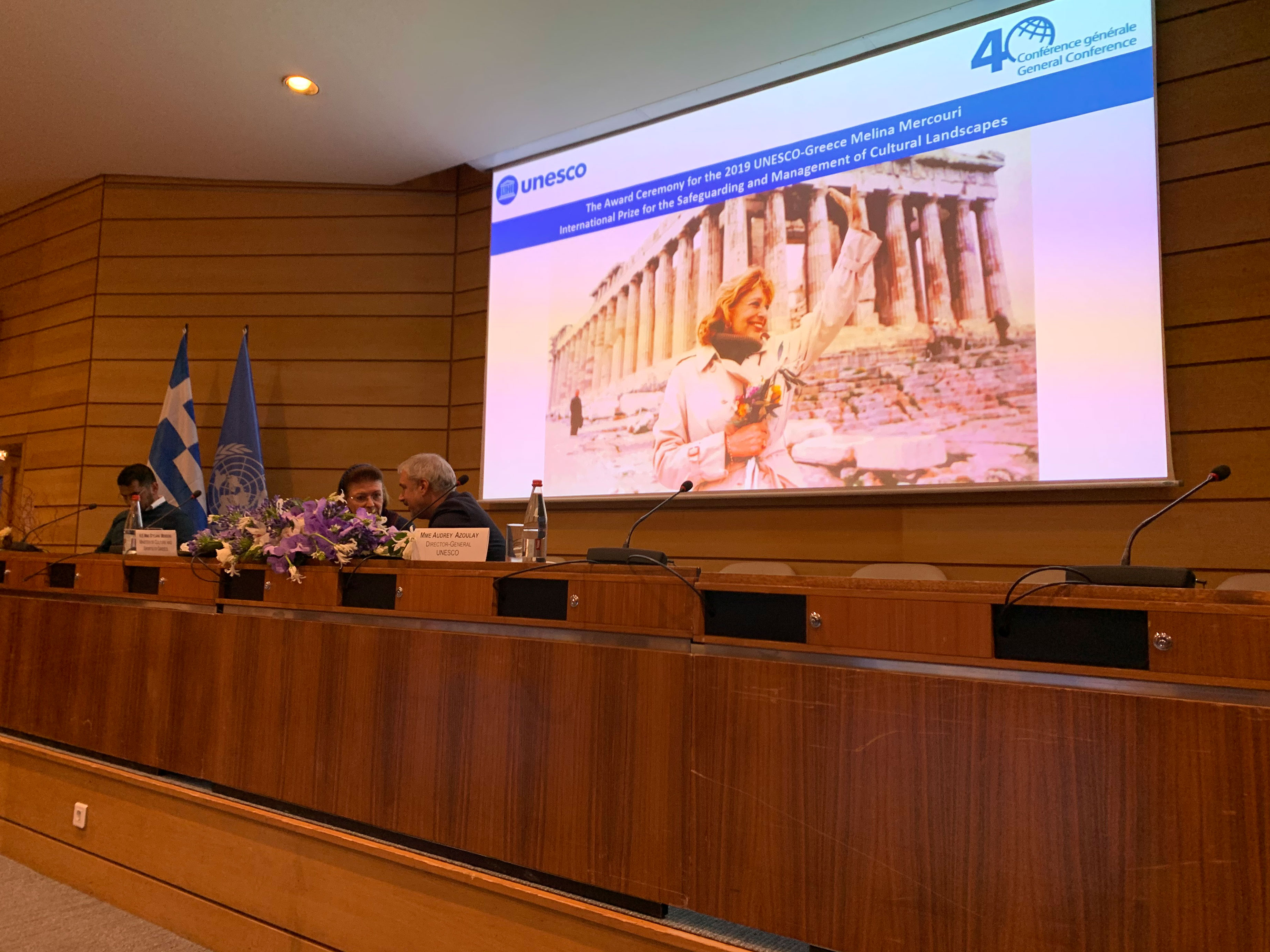 Το βραβείο «Μελίνα Μερκούρη» που θεσπίστηκε από την Ελλάδα το 1995, απονέμεται ανά διετία σε θεσμούς, ιδρύματα ή προσωπικότητες που διακρίνονται στην προστασία του πολιτιστικού τοπίου και είναι το μοναδικό βραβείο σε αυτόν τον τομέα.