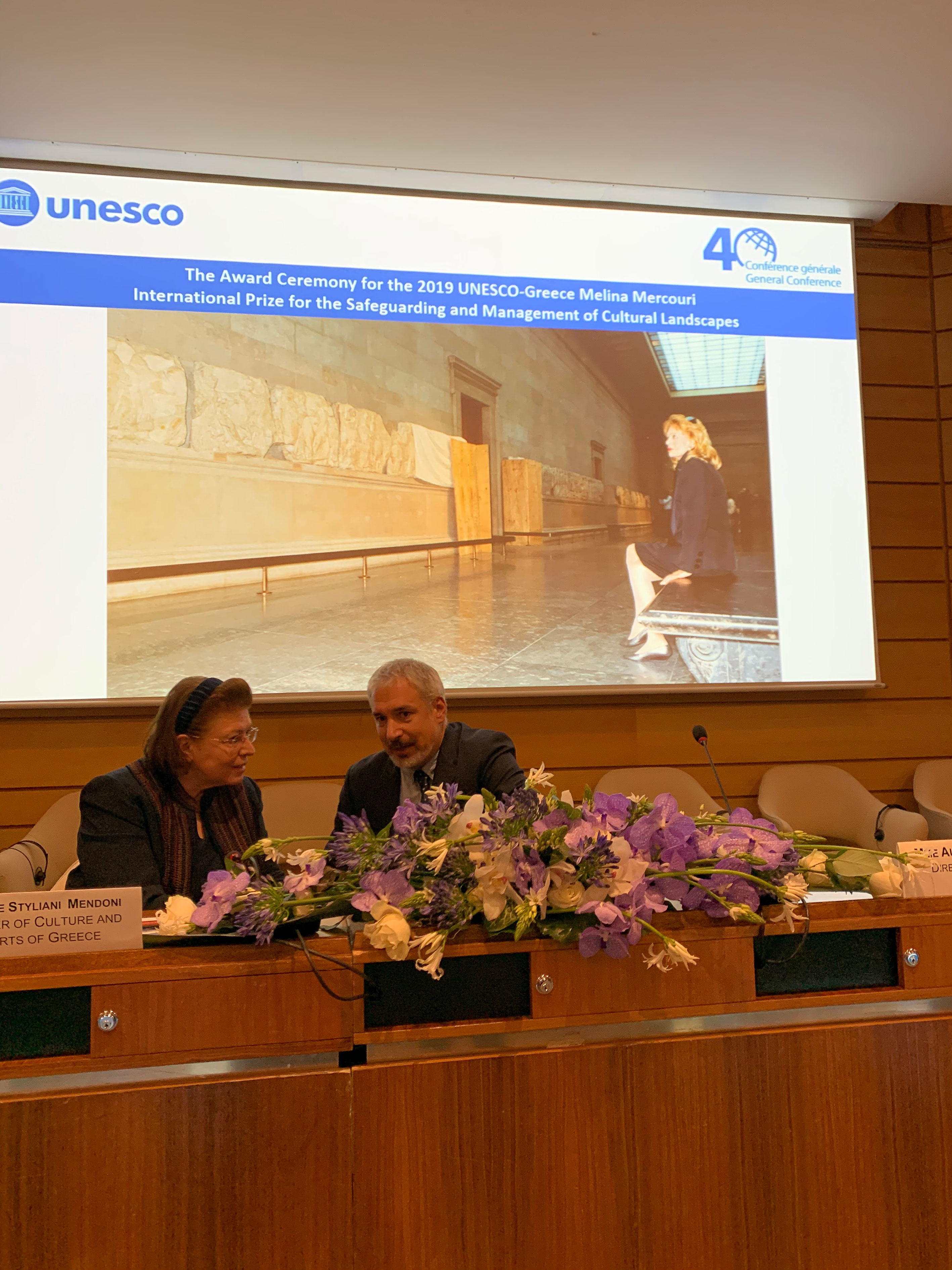 Σήμερα, αισθανόμαστε ιδιαίτερη χαρά για την επανεκκίνηση του Διεθνούς Βραβείου UNESCO «Μελίνα Μερκούρη». Η Ελλάδα και το Υπουργείο Πολιτισμού και Αθλητισμού ως ενεργά μέλη της UNESCO συμβάλλουν κατ' αυτόν τον τρόπο στην ενίσχυση των στόχων του Οργανισμού για την εδραίωση διεθνών συνεργειών και την ανάδειξη πολιτιστικών αγαθών.
