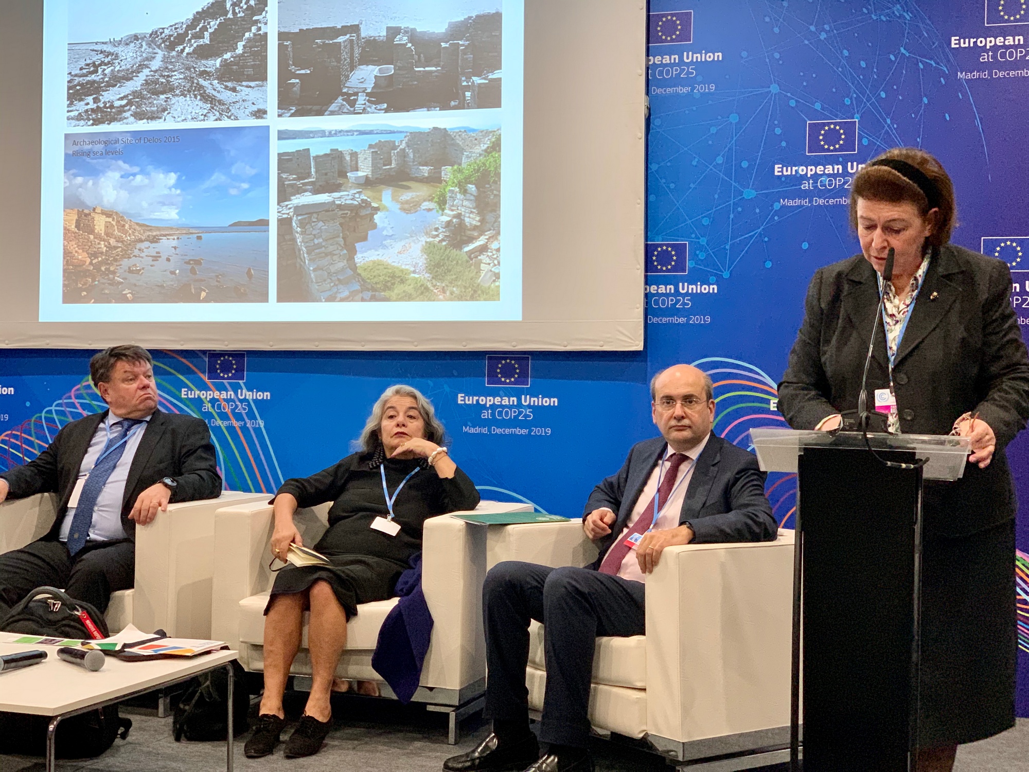 Στην διεπιστημονική έρευνα που συμβάλλει στην καλύτερη γνώση και συνέχεια στην προσφορότερη αντιμετώπιση και διαχείριση των επιπτώσεων της κλιματικής αλλαγής, αναφέρθηκε σήμερα στην εισήγηση της η υπουργός Πολιτισμού και Αθλητισμού- στην παράπλευρη -εκδήλωση της Cop25 στη Μαδρίτη. Το συγκριτικό πλεονέκτημα της Ελλάδας είναι ότι, εξαιτίας της μακράς Ιστορίας της, διαθέτει τεκμήρια από τις γραπτές πηγές και τα αρχαιολογικά δεδομένα για την κατάσταση των κλιματικών αλλαγών και φαινομένων, που υποστηρίζουν την κατάρτιση σχεδίων για το μέλλον.