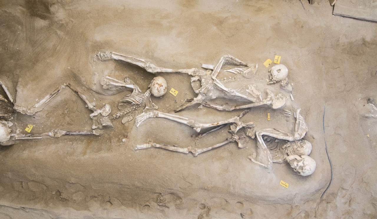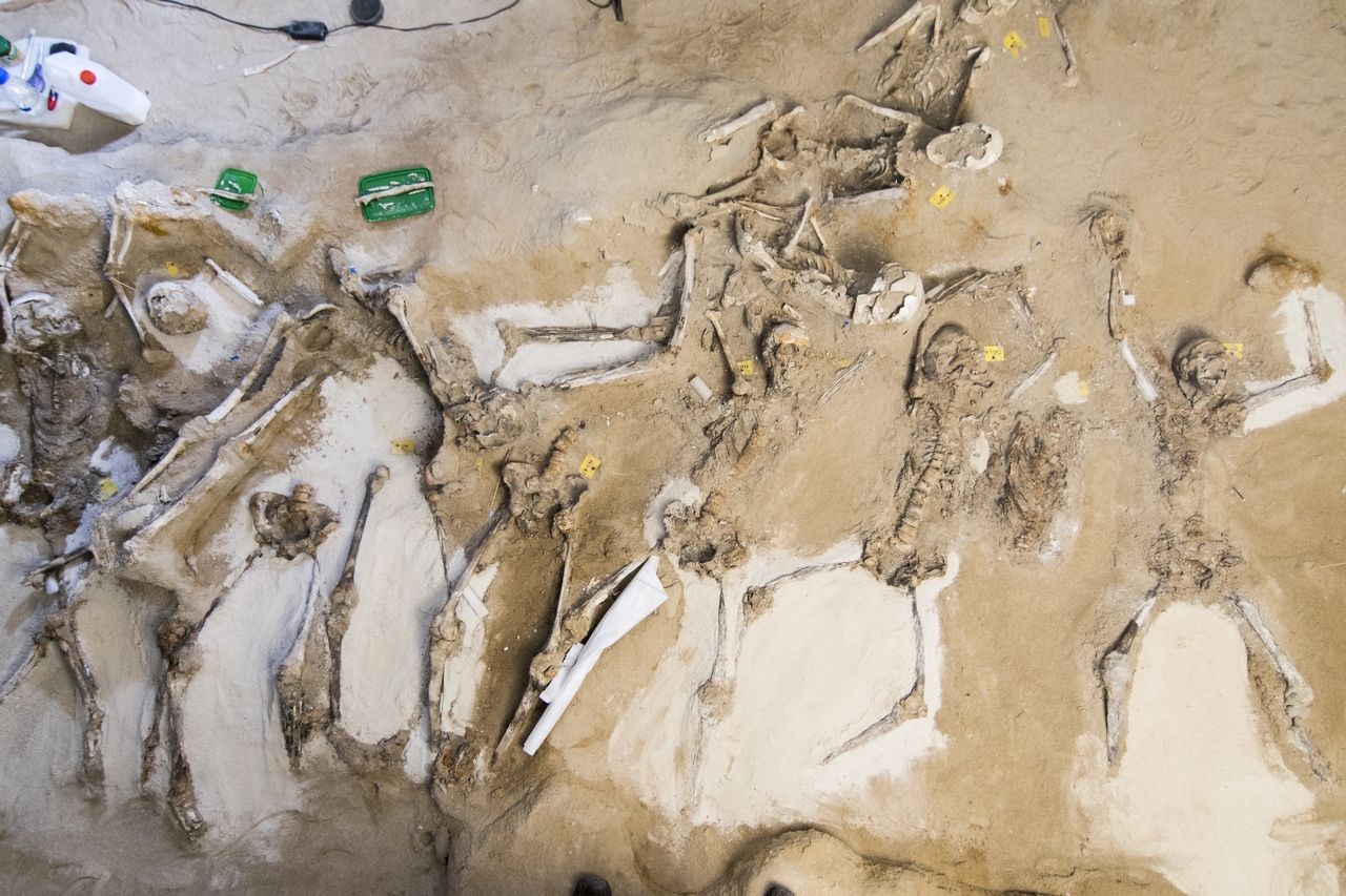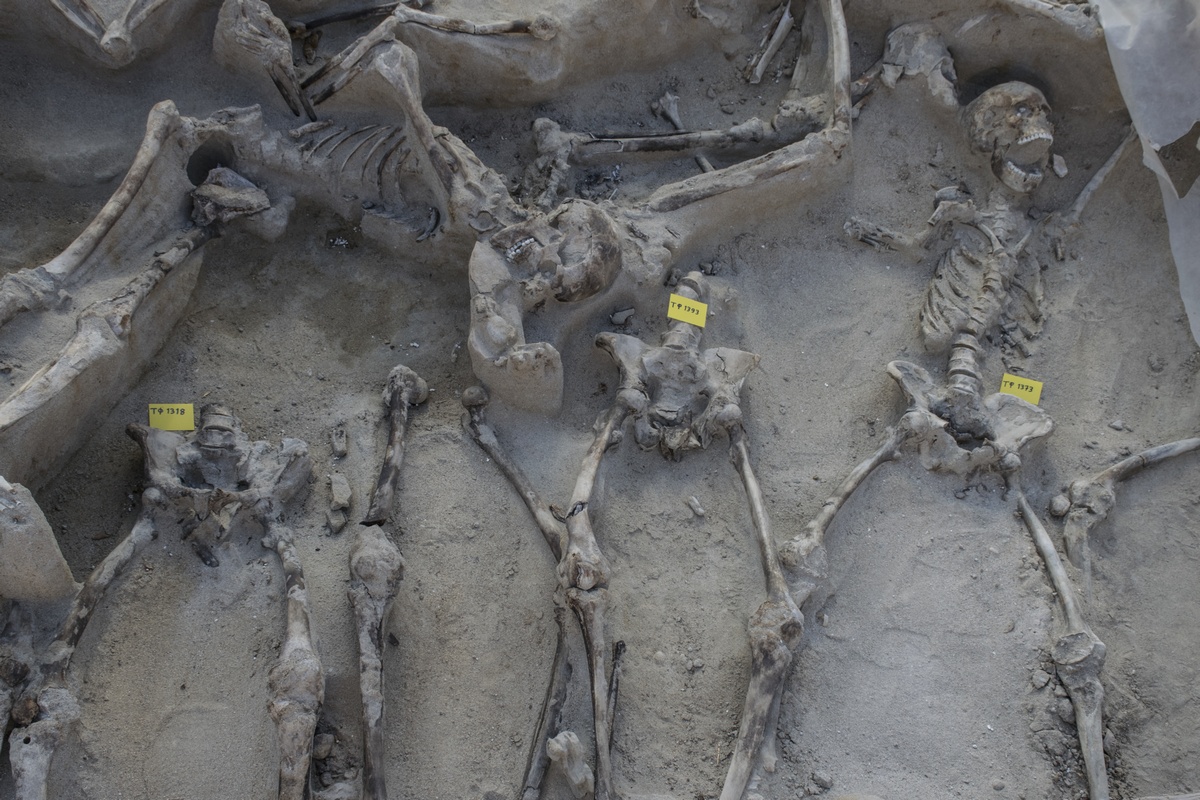 Η μαζική ταφή αποτελείται από 79 σκελετούς σε τρεις σειρές. Για την προστασία τους χρησιμοποιήθηκε μία τέντα η οποία θα είχε διάρκεια ενός χρόνου, αλλά παραμένει να καλύπτει το σκάμμα ως σήμερα. Πρέπει το ΚΑΣ να γνωμοδοτήσει για την τύχη του ευρήματος με τα σημερινά δεδομένα. Όλοι μιλάμε για την εξαιρετική προστασία που εξασφαλίζομε αλλά αφήνουμε μνημεία στο έλεος τους.