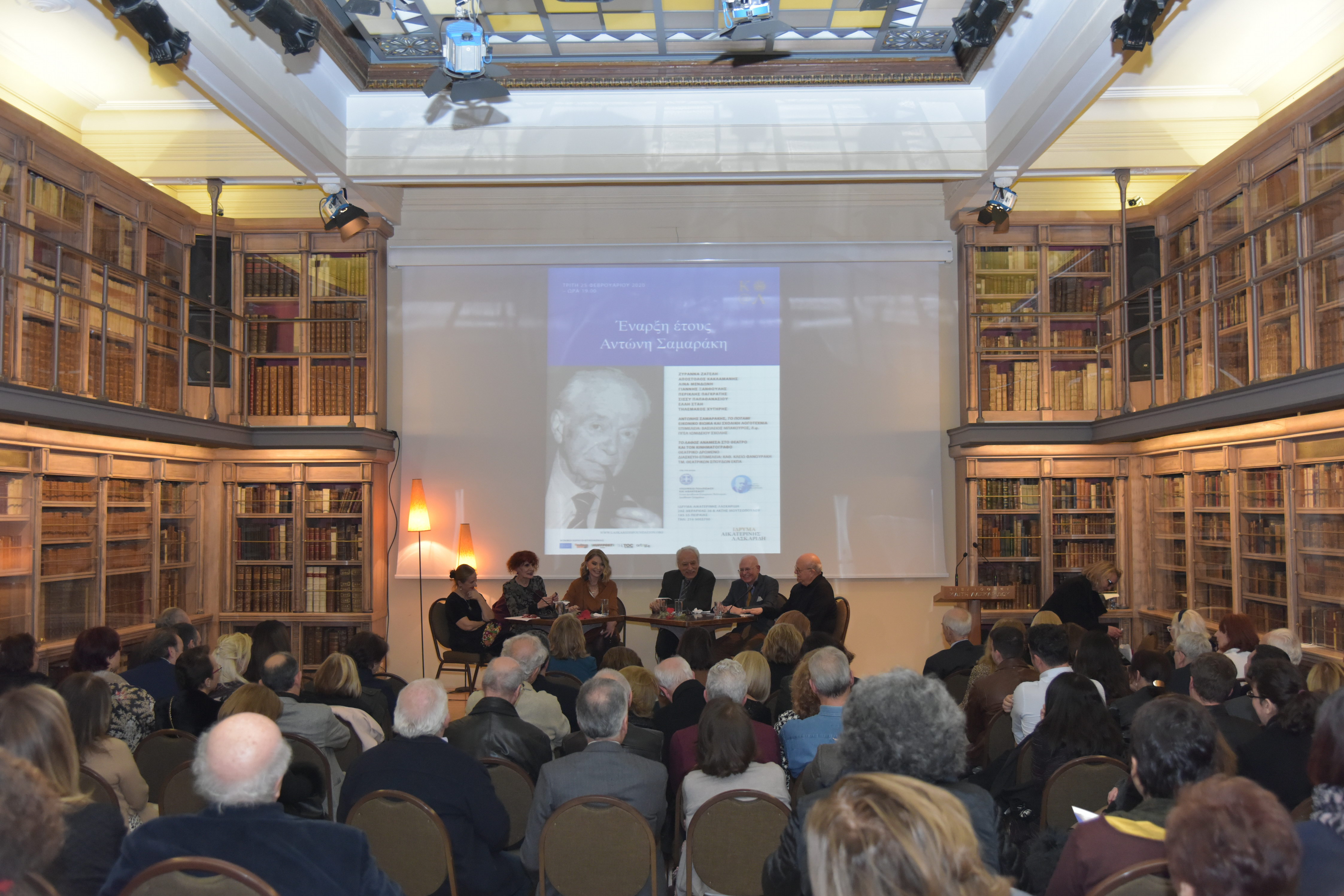 Η πρώτη εκδήλωση του Έτους Αντώνη Σαμαράκη πραγματοποιήθηκε χθες, Τρίτη 25 Φεβρουαρίου, στο Ίδρυμα Αικατερίνης Λασκαρίδη, παρουσία της Υπουργού Πολιτισμού και Αθλητισμού, Λίνας Μενδώνη. Στην εκδήλωση μίλησαν για τη ζωή και το έργο του Αντώνη Σαμαράκη, η Διευθύντρια του Ιδρύματος, Καλή Κυπαρίσση, η Ζυράννα Ζατέλη, ο Γιάννης Ξανθούλης, ο Περικλής Παγκράτης, η Σίσσυ Παπαθανασίου, η Έλλη Στάη, ο Τηλέμαχος Χυτήρης και ο πρώην Πρόεδρος της Βουλής, Απόστολος Κακλαμάνης.