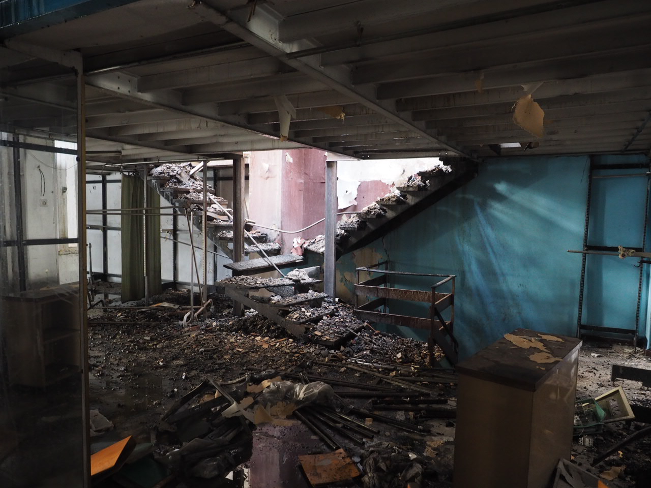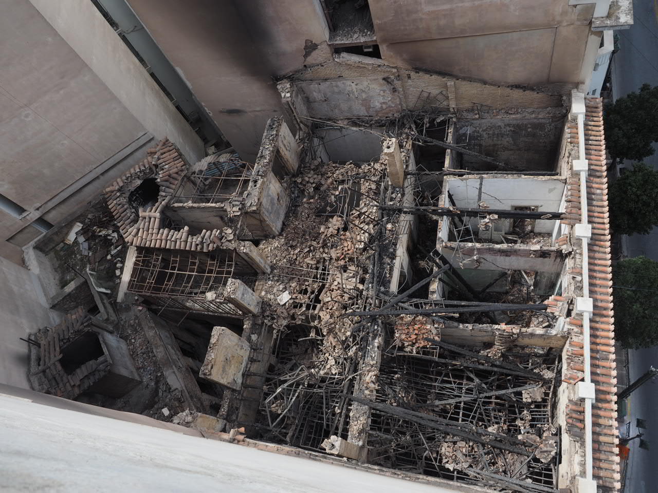 Η πυρκαγιά φαίνεται να ξεκίνησε και να περιορίστηκε στον β΄ όροφο του αρχικού κτηρίου, με αποτέλεσμα να έχει καταστραφεί μέρος του ξύλινου πατώματος του β' ορόφου και να έχει καταρρεύσει η ξύλινη στέγη. Ωστόσο, η νεοκλασική όψη επί της οδού Σταδίου, ο Α΄ όροφος, τα δομικά στοιχεία του ισογείου, του α΄ ορόφου και του υπογείου δεν έχουν υποστεί ιδιαίτερες βλάβες. Οι εσωτερικές νεωτερικές διαρρυθμίσεις τα πατάρια και οι ψευδοροφές έχουν υποστεί αρκετές ζημιές λόγω της κατάρρευσης του δαπέδου του υπερκείμενου ορόφου. Επίσης, έχουν διασωθεί (με αρκετές ζημιές) το σημαντικό παλαιό ξύλινο κλιμακοστάσιο του κτηρίου και ο ζωγραφικός διάκοσμος του Α΄ ορόφου.