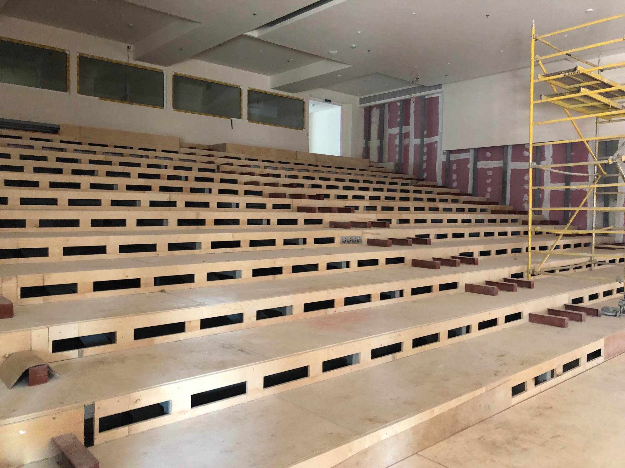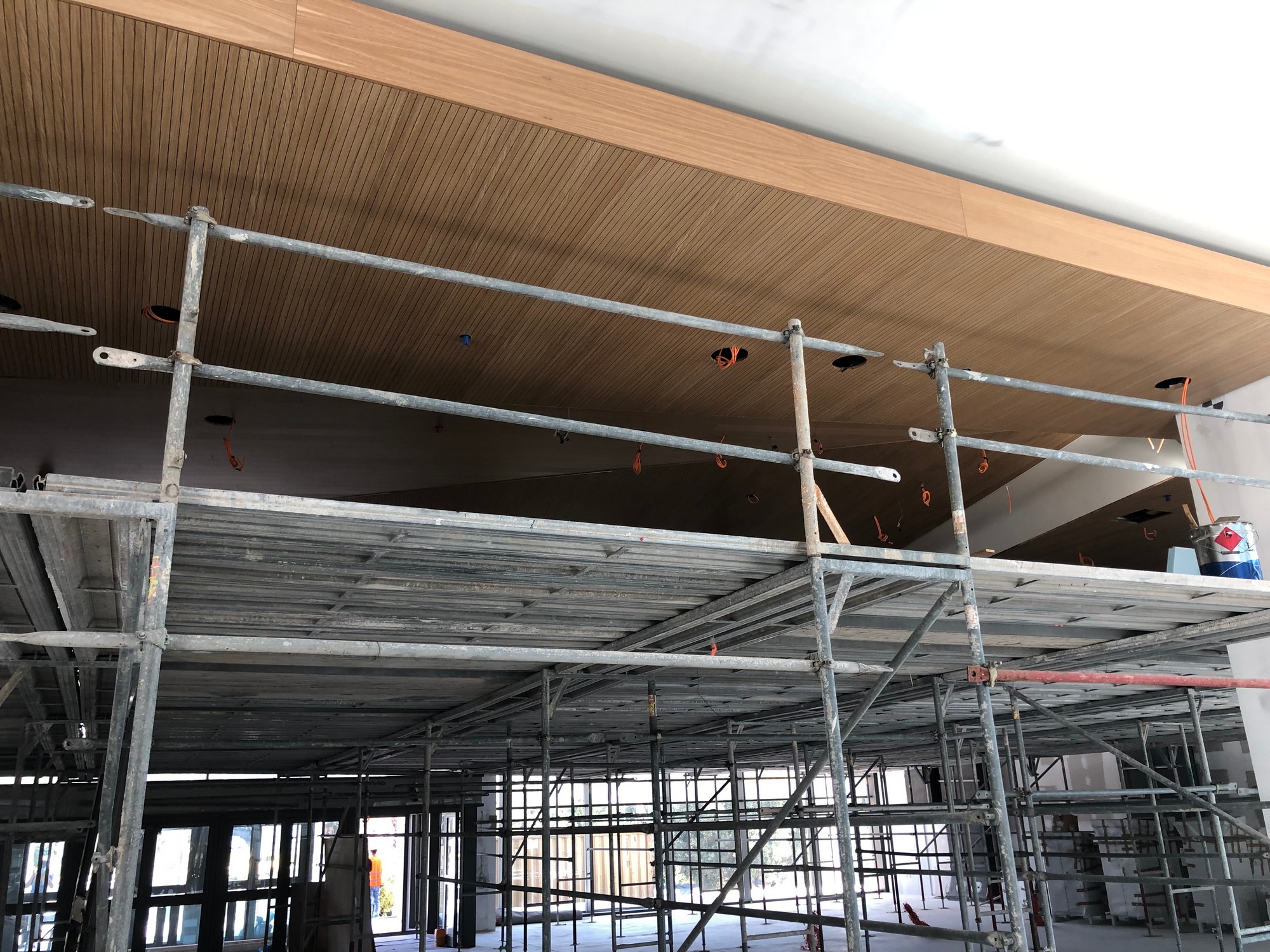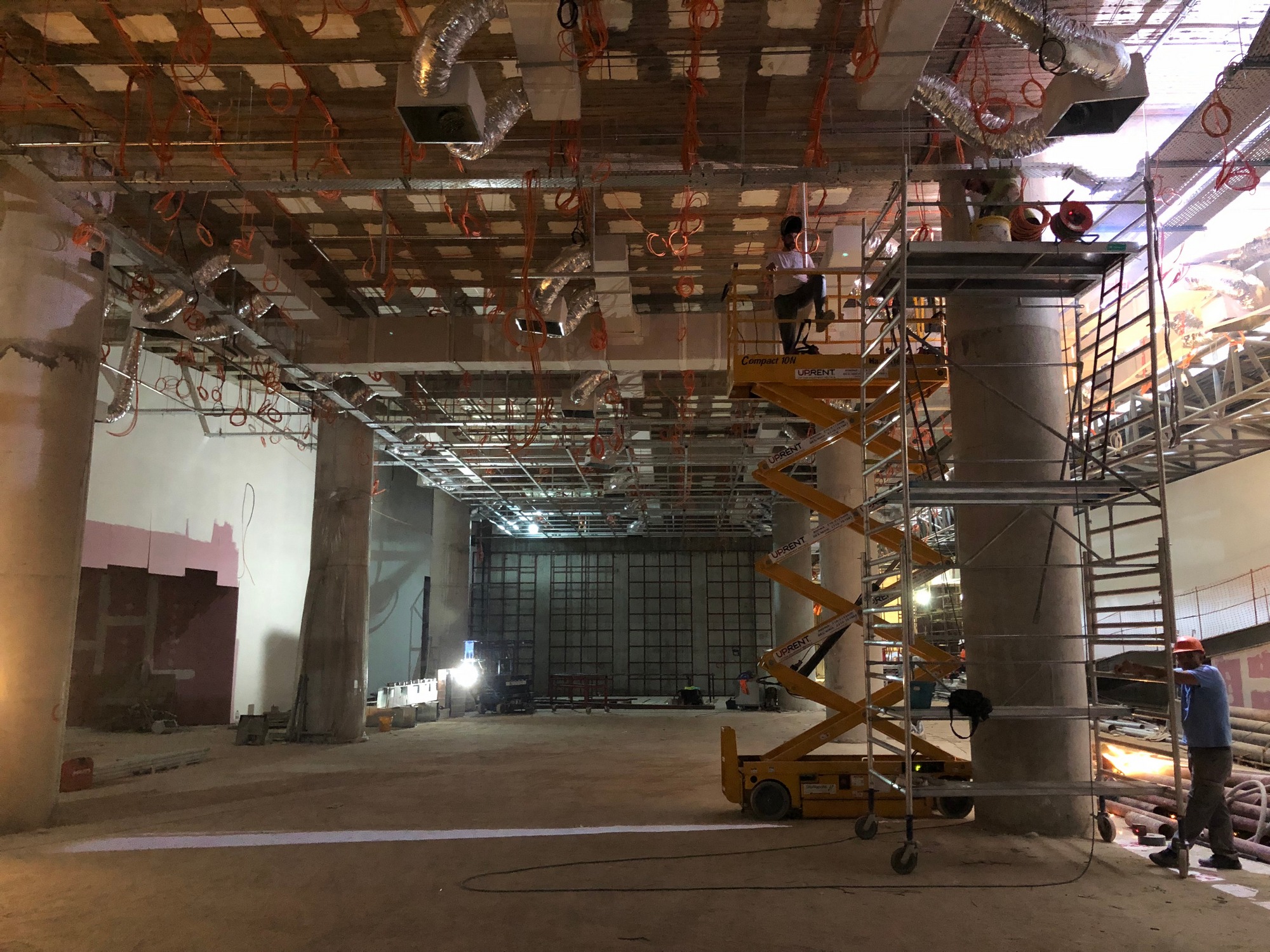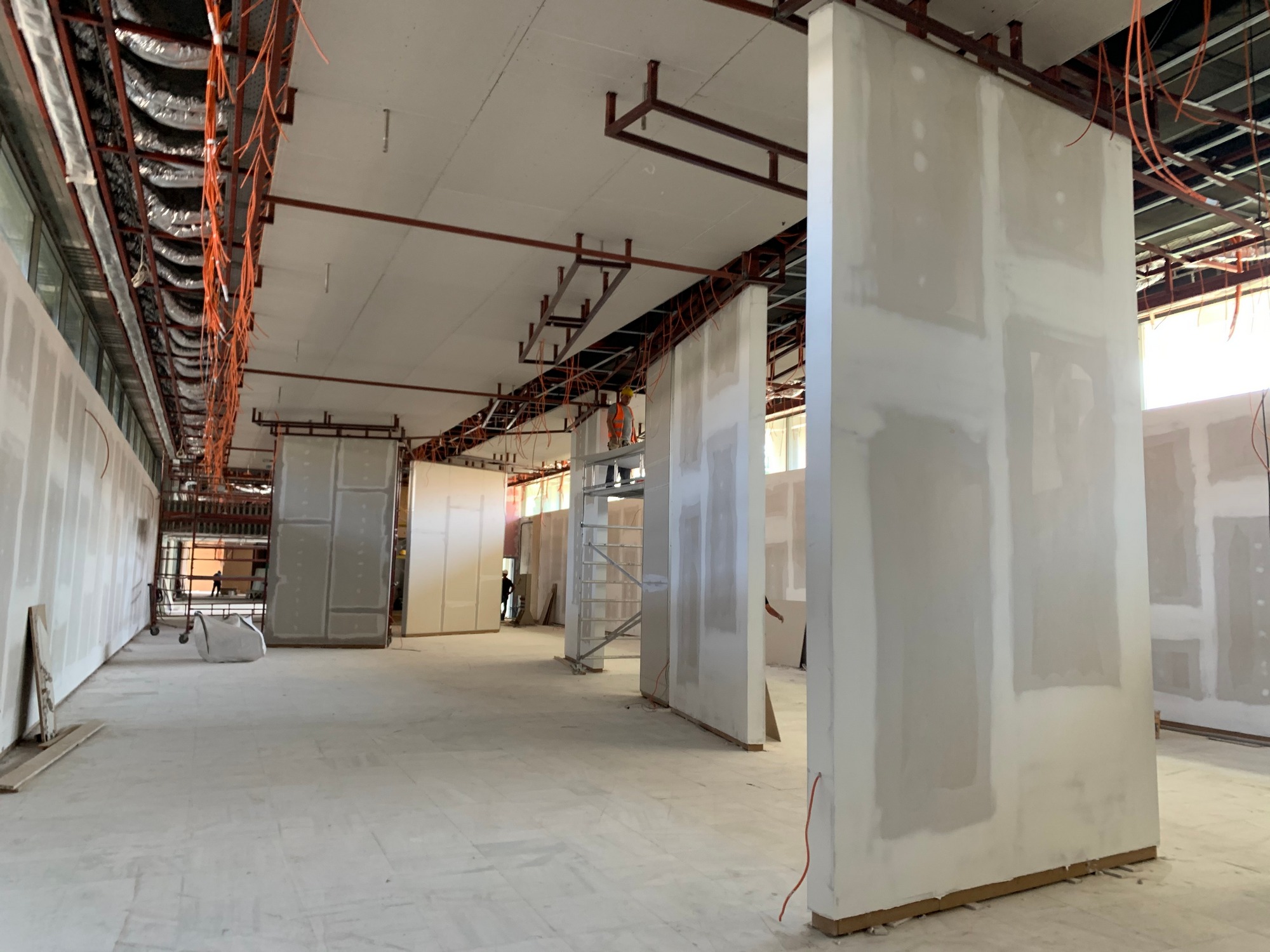 Στους εκθεσιακούς χώρους τοποθετούνται τα πατώματα, οι επενδύσεις στους τοίχους και οι ψευδοροφές, ενώ προχωρούν και οι εγκαταστάσεις στους χώρους υγιεινής. Σε εξέλιξη βρίσκεται και η κατασκευή του κεντρικού αμφιθεάτρου, το οποίο θα παραδοθεί ολοκληρωμένο τον προσεχή Οκτώβριο. Αντίστοιχο είναι και το χρονοδιάγραμμα που έχει τεθεί για την τοποθέτηση του «πλανάρ», του υαλοστασίου, που καλύπτει το κτήριο Β και επιτρέπει στους επισκέπτες να περπατούν στις ράμπες και συγχρόνως να απολαμβάνουν την θέα προς τον Λυκαβηττό. Την επόμενη εβδομάδα υπογράφεται η σύμβαση με την ανάδοχο εταιρεία για την διαμόρφωση του περιβάλλοντος χώρου, έργο, το οποίο εντάχθηκε στο ΠΕΠ Αττικής- ΕΣΠΑ 2014-2020, προϋπολογισμού 1.000.000 ευρώ. Παράλληλα, δρομολογείται ο διαγωνισμός, ώστε να προκηρυχθεί τον προσεχή Σεπτέμβριο για τα ψηφιακά προγράμματα της Πινακοθήκης, προϋπολογισμού 2.500.000 ευρώ από το εθνικό σκέλος του Προγράμματος Δημοσίων Επενδύσεων.