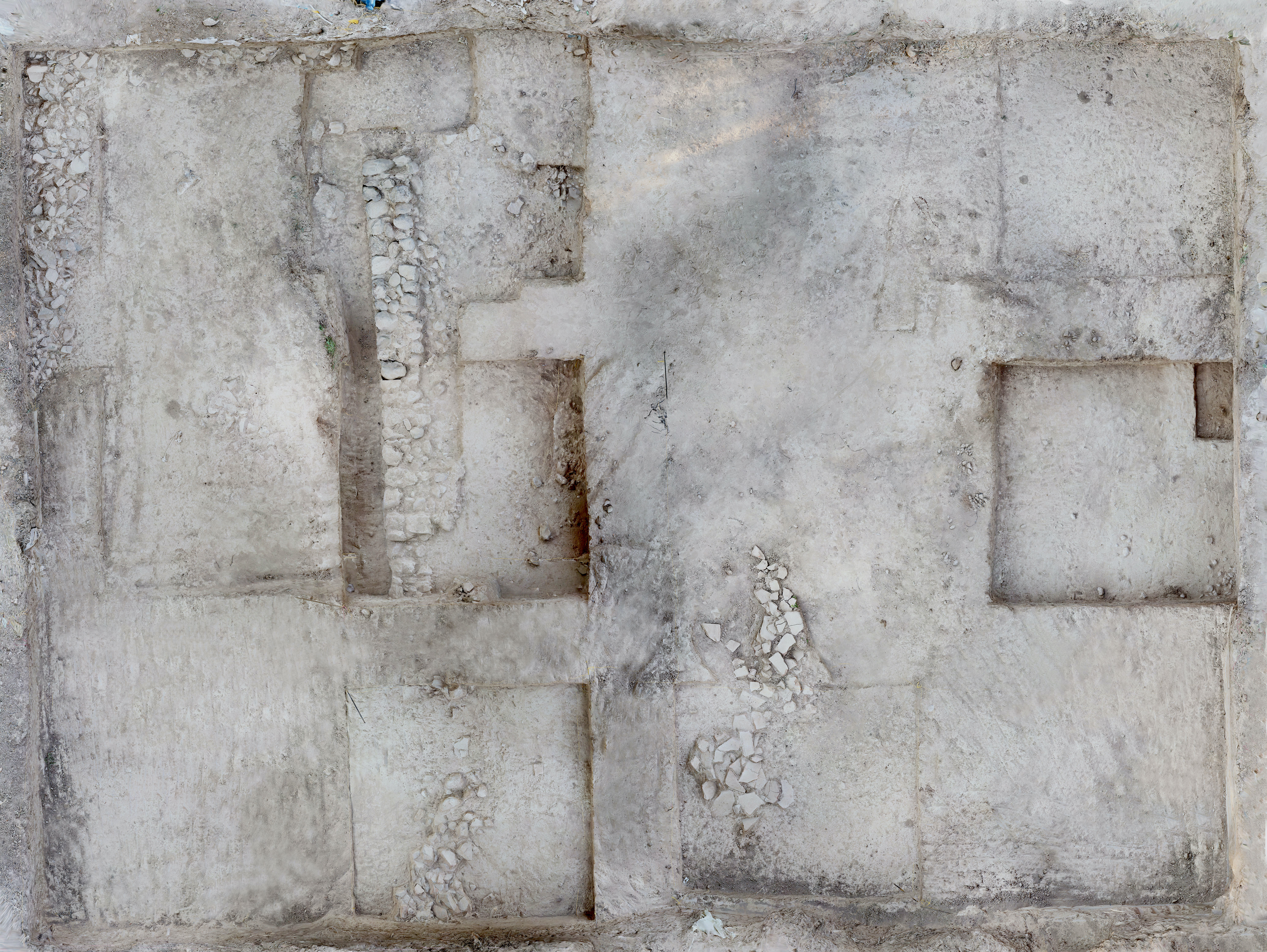 φωτό 2. Γενική άποψη της ανασκαφής προς βορρά. Διακρίνεται το στρώμα καταστροφής της κεράμωσης του αρχαϊκού ναού (550 π.Χ.) σε διάφορα σημεία και ο τοίχος κτιρίου του 8ου αι. π.Χ.