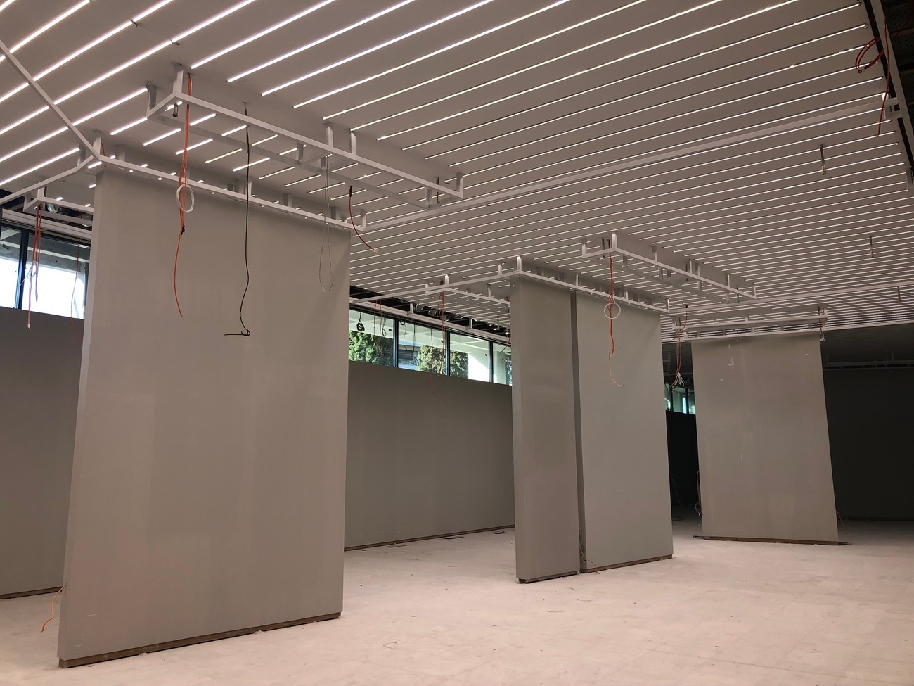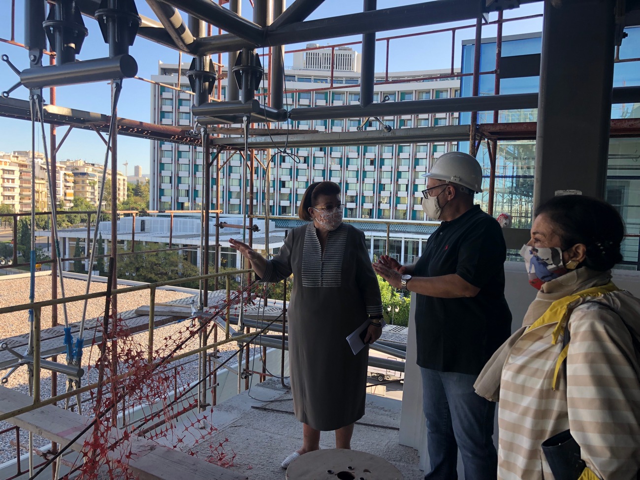 Στο εργοτάξιο της Εθνικής Πινακοθήκης καθημερινά εργάζονται περισσότερα από 100 άτομα. Στο κεντρικό φουαγιέ έχει ολοκληρωθεί η τοποθέτηση των ψευδοροφών και απομένουν οι τελικές ξύλινες επενδύσεις. Ψευδοροφές έχουν τοποθετηθεί και στους εκθεσιακούς χώρους του α' και β' ορόφου, ενώ προχωρά και ο χώρος του εστιατορίου. Αυτές τις ημέρες στους ορόφους τοποθετούνται τα ξύλινα δάπεδα. Παράλληλα, το χρονοδιάγραμμα ακολουθούν οι εργασίες στον χώρο των περιοδικών εκθέσεων και του αμφιθεάτρου, όπου έχουν τοποθετηθεί οι ξύλινες επενδύσεις και μέσα στις επόμενες ημέρες θα εγκατασταθεί μηχανολογικός εξοπλισμός. Επίσης, κανονικά προχωρούν οι εργασίες ολοκλήρωσης του «πλανάρ», του υαλοστασίου, που καλύπτει το κτήριο Β και επιτρέπει στους επισκέπτες να περπατούν στις ράμπες, όπου υπήρξε μικρή καθυστέρηση εξαιτίας της πανδημίας. Η κ. Μενδώνη ζήτησε από τα υπηρεσιακά στελέχη του ΥΠΠΟΑ να αντιμετωπίσουν άμεσα, μέχρι την ερχόμενη Δευτέρα, τυχόν εκκρεμότητες, οι οποίες αφορούν σε προμήθειες υλικών, ώστε να προχωρήσει απρόσκοπτα η τελευταία φάση των εργασιών.