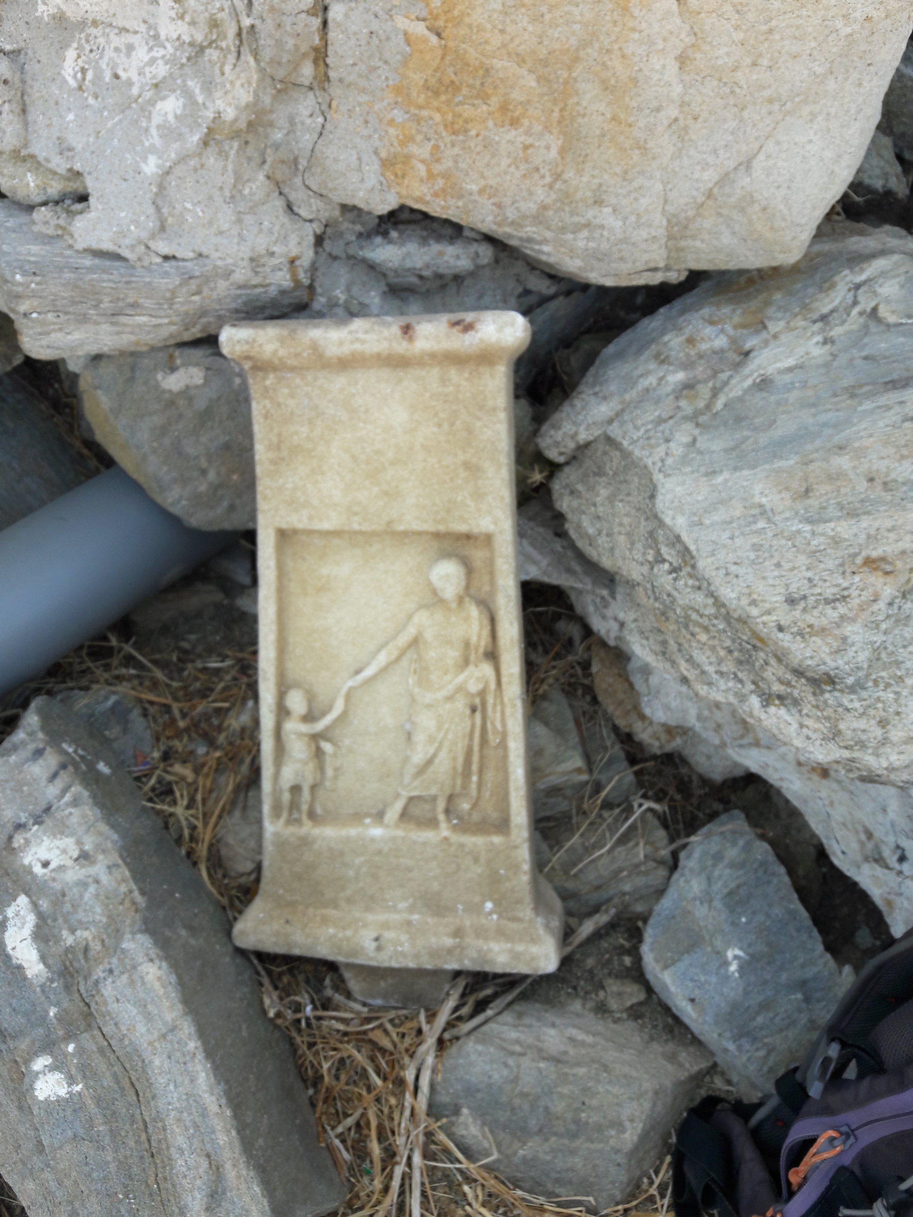 Εικ. 5, 5α. Επιτύμβιες στήλες και τμήματά τους που εντοπίστηκαν κατά την εφετινή περίοδο έρευνας στην Ρήνεια.