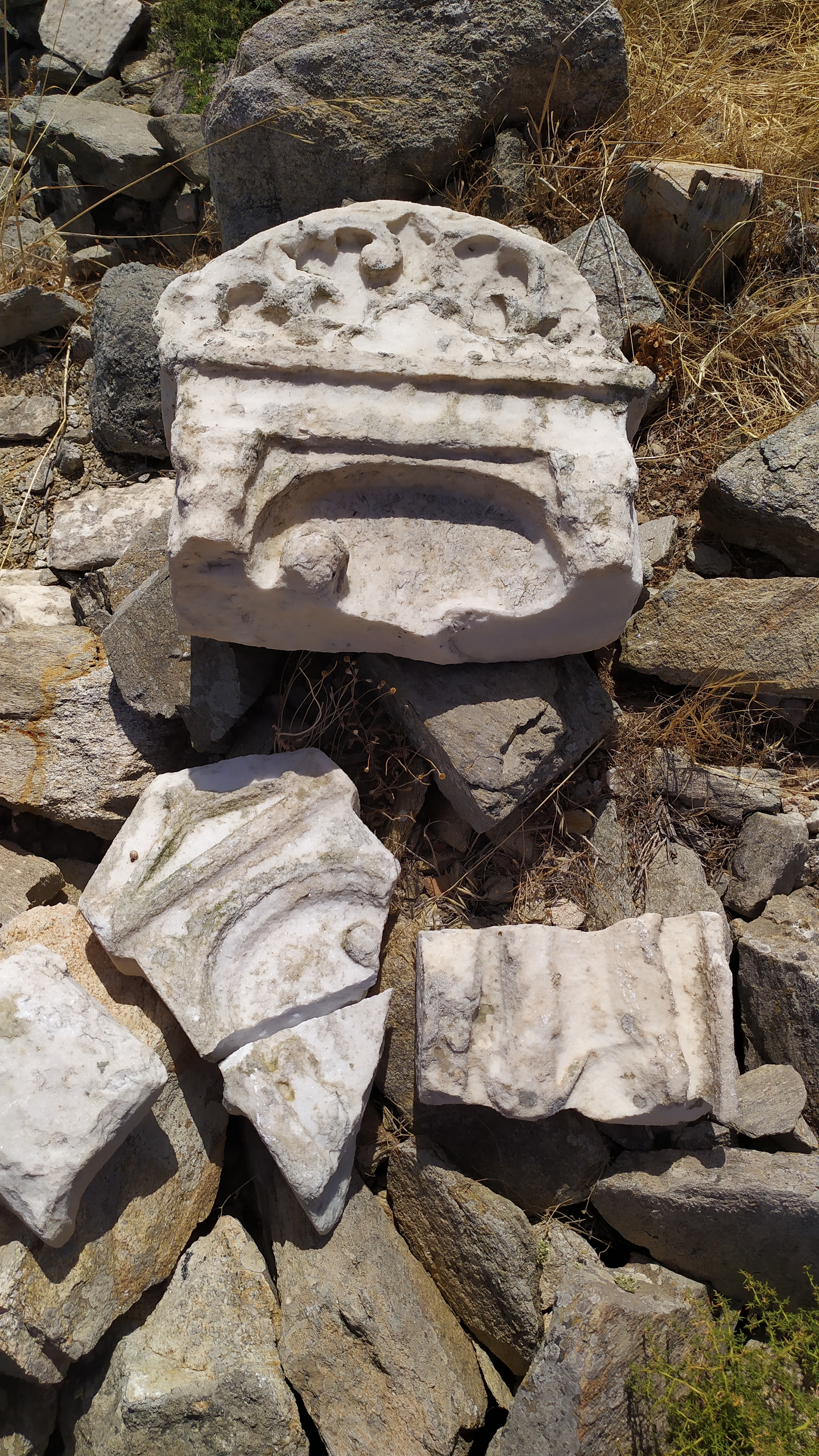 Εικ. 6. Θεμέλιο και αρχιτεκτονικά μέλη κατασκευής, πιθανώς μνημειακού βωμού, στην θέση Χωμασοβούνι