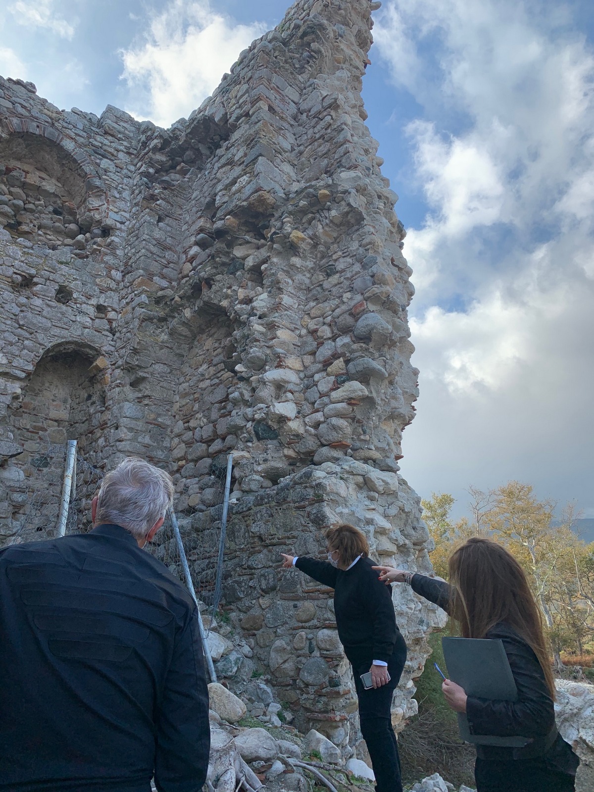 Η Υπουργός Πολιτισμού και Αθλητισμού Λίνα Μενδώνη πραγματοποίησε αυτοψία στον Πύργο του Φονιά συνοδευόμενη από τον Διευθυντή Αναστήλωσης Βυζαντινών και Μεταβυζαντινών Μνημείων Θεμιστοκλή Βλαχούλη, την Έφορο Αρχαιοτήτων Έβρου Δόμνα Τερζοπούλου και την αρμόδια τμηματάρχη Λίλα Σαμπανοπούλου.