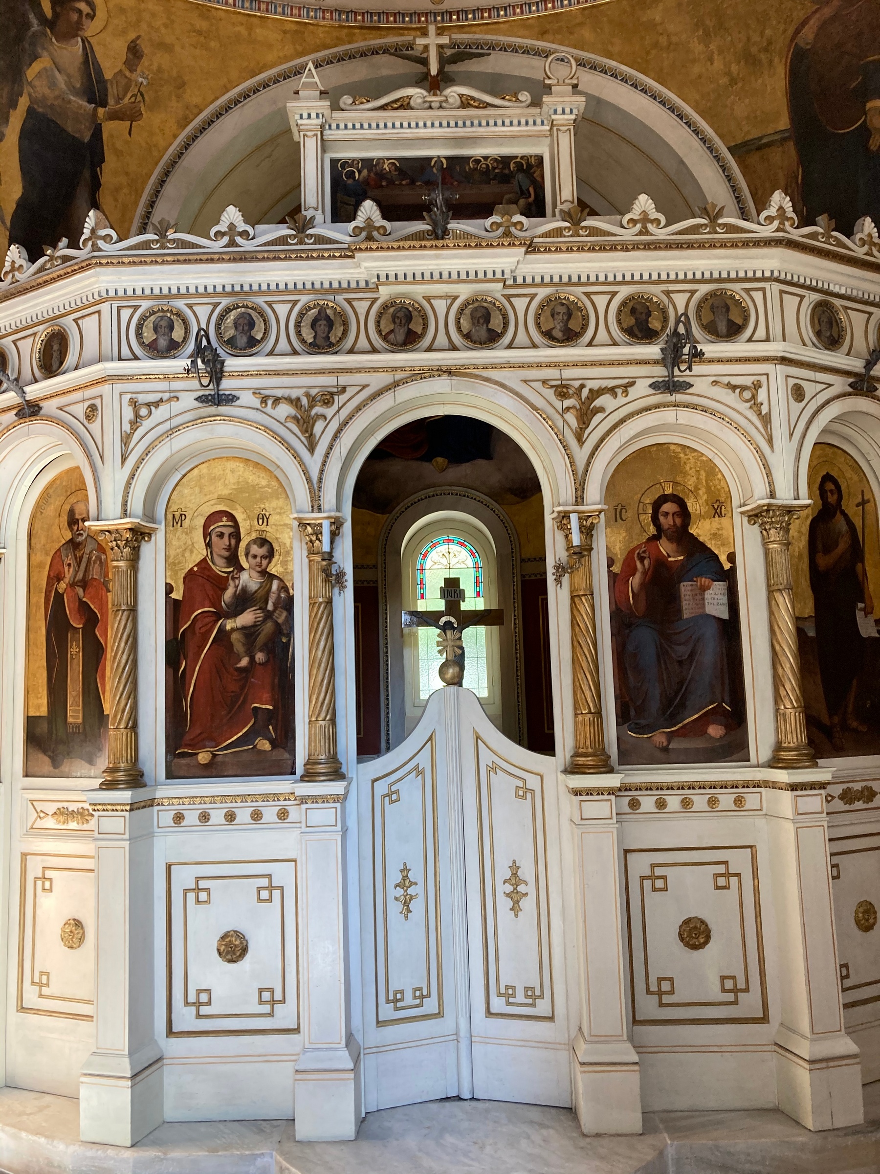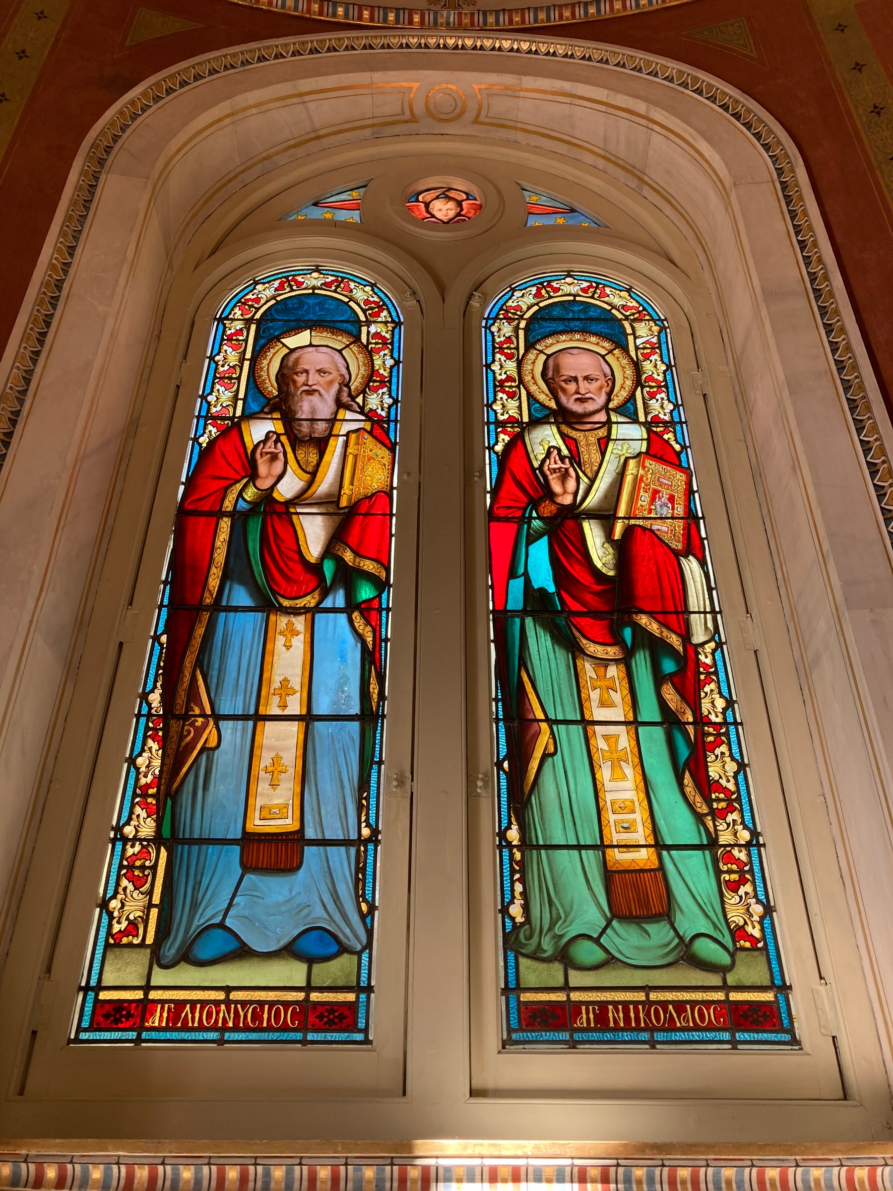 Ο ναός κτίστηκε σύμφωνα με σχέδια του αρχιτέκτονα Αναστασίου Μεταξά -και όχι του Τσίλλερ όπως αποδίδονταν μέχρι πρόσφατα- και εγκαινιάστηκε στις 26 Μαρτίου 1895, παρουσία υψηλών προσκεκλημένων. Η εξωτερική επιφάνειά του διαμορφώνεται πλαστικά, με οριζόντιες παράλληλες ταινίες που διαχωρίζονται με σκοτίες και στην ανώτερη στάθμη διαμορφώνεται ζώνη με έκτυπα κυκλικά στοιχεία. Τα ανοίγματα του ναού πλαισιώνουν παραστάδες με γύψινα επίκρανα κορινθιακού τύπου, ενώ τα δύο αντιδιαμετρικά παράθυρα φέρουν αξιόλογες υαλογραφίες (βιτρώ), ρωσικού εργαστηρίου.