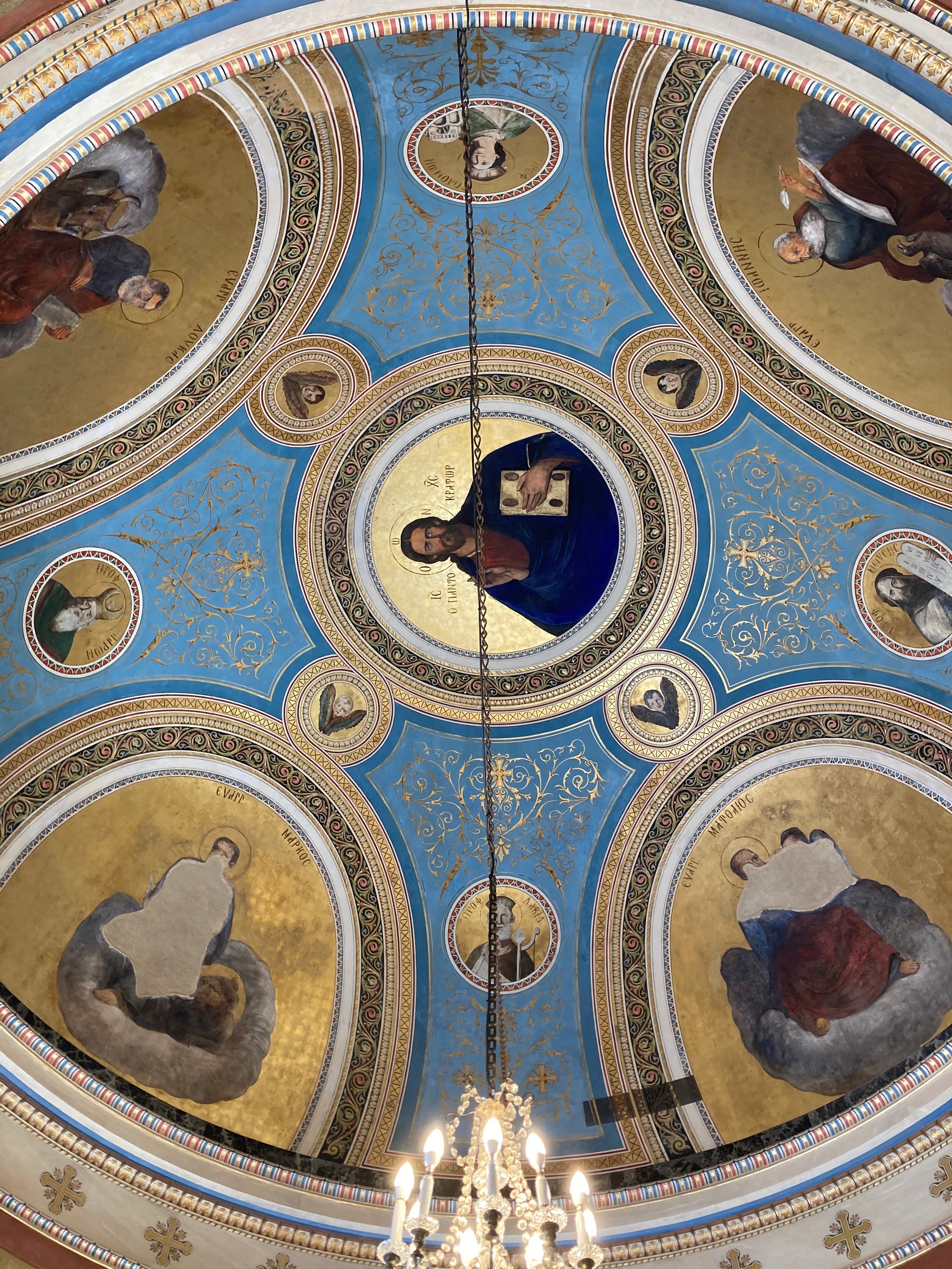 Εσωτερικά ο ναός διακοσμείται με την τεχνική al secco κατά ζώνες, με την κατώτερη να μιμείται ορθομαρμάρωση. Στον τρούλο εικονίζεται ο Παντοκράτορας μεταξύ ευαγγελιστών και προφητών, στον κόγχη η Θεοτόκος ένθρονη βρεφοκρατούσα και εκατέρωθεν αυτής ο Ευαγγελισμός. Το ιερό βήμα διαχωρίζεται από τον κυρίως ναό με ξύλινο τέμπλο.